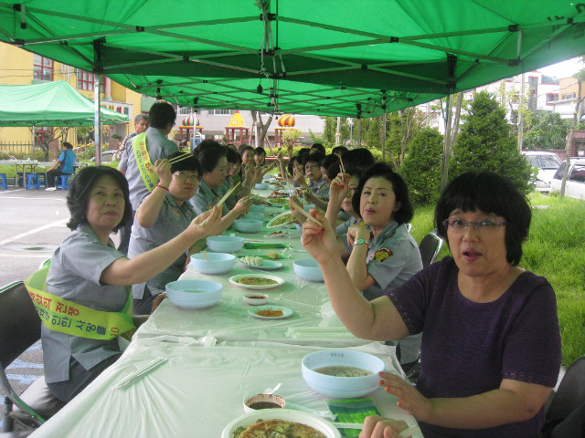 부녀회 회원님들이 판매하시는 맛난 국수와 빈대떡, 도토리묵을 먹으며, 적게나마