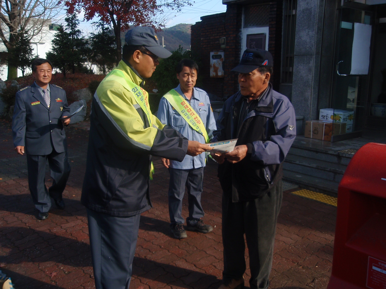 부론의용소방대(대장 김진수)와 부론여성의용소방대(대장 김윤수)에서는 11월 15일 오전 남여 대원 각각 13명씩 총 26명의 대원이 참여한 가운데 10시부터 12시까지 부론면 소재지등에서 불조심 캠페인을 벌이면서 겨울철 화재예방 홍보및 응급상황발생시 심폐소생술실시 홍보물을 배포하면서 거리 홍보 활동을 진행했습니다. 이어서 13시부터는 손곡리 소재 긴경산 등산로로 이동해서 등반객등을 상대로 산불예방홍보활동을 진행했습니다.