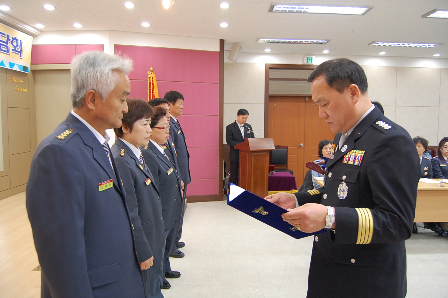 간담회에 앞서 원주시의용소방대연합회 2011년 임원(6)에 대한 위촉장과 연임대장(2) 임명장 수여식이 있었습니다.