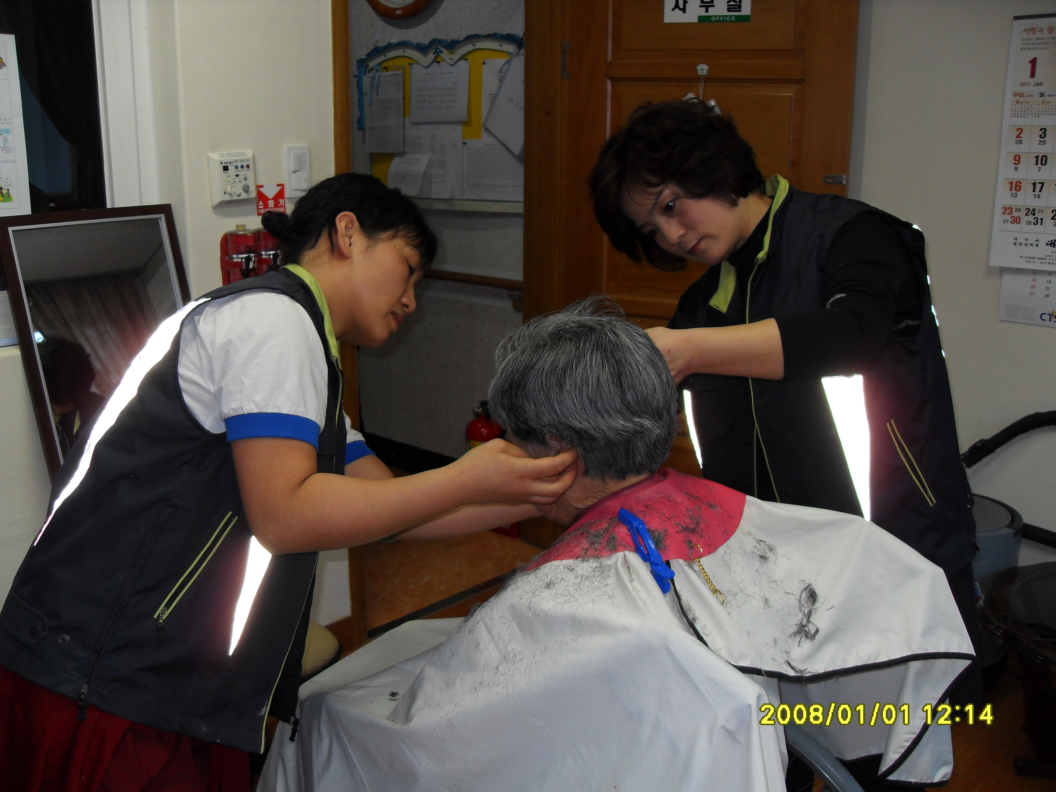 2011년 1월 30일(일) 지정 여성 의용소방대(대장 박인수)는 매월 실시하고 있는 평심원에서의 미용봉사를 하였습니다.