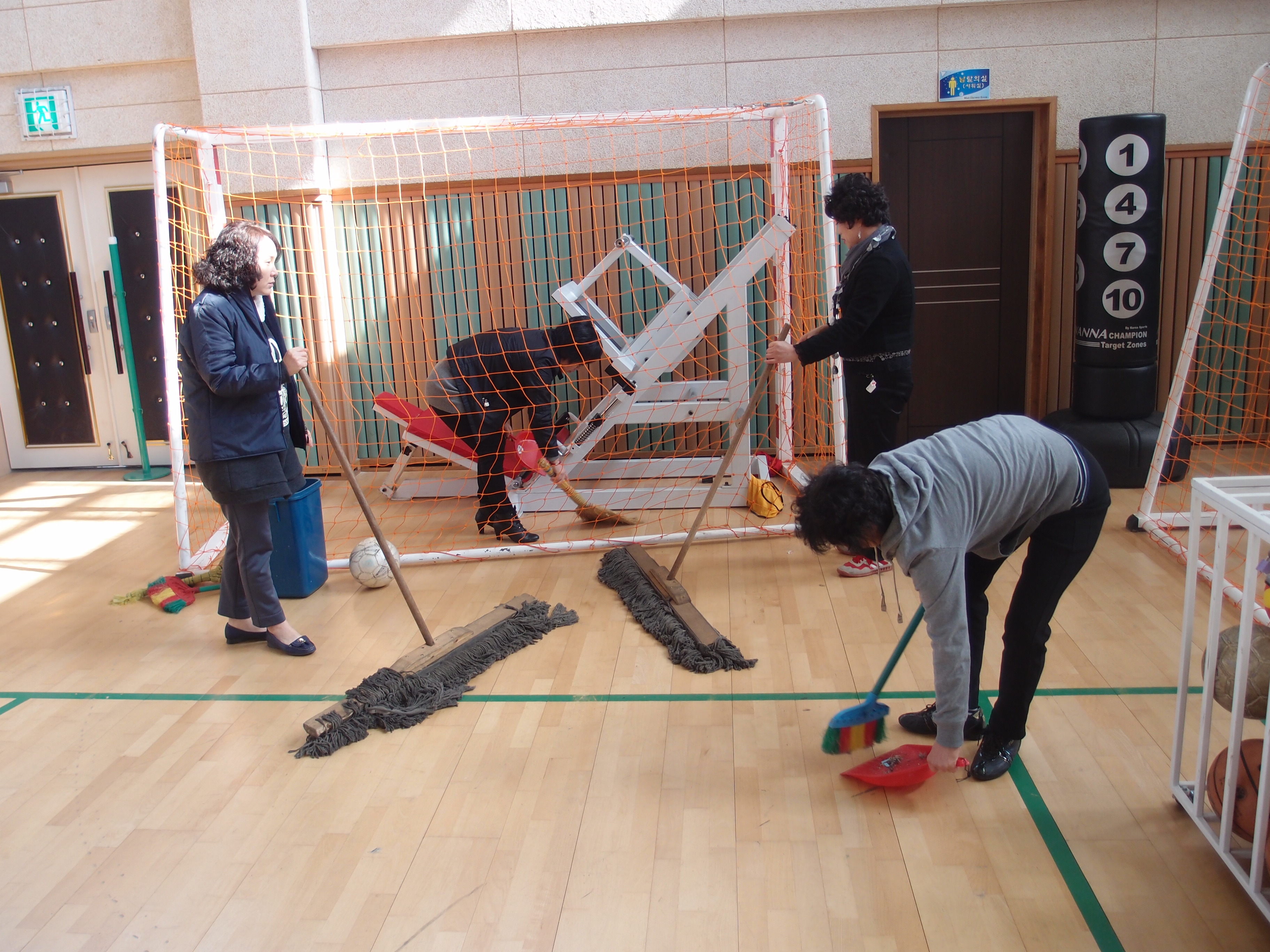 오늘은 청원학교 체육관 바닥과 스텐드를 닦았지요?