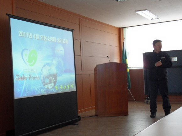 지난 주 4월 12일 호저면사무소 대회의실에서 호저여성의소대 4월 정기교육이 있었습니다 화재 사례들을 살펴보며 교육을 들었고 새로 바뀌어진 심폐소생술등 화재에 관한 다양한 통계자료를 보며 의소대원들이 알아야할 다양한 정보들에 유익한 교육이었습니다