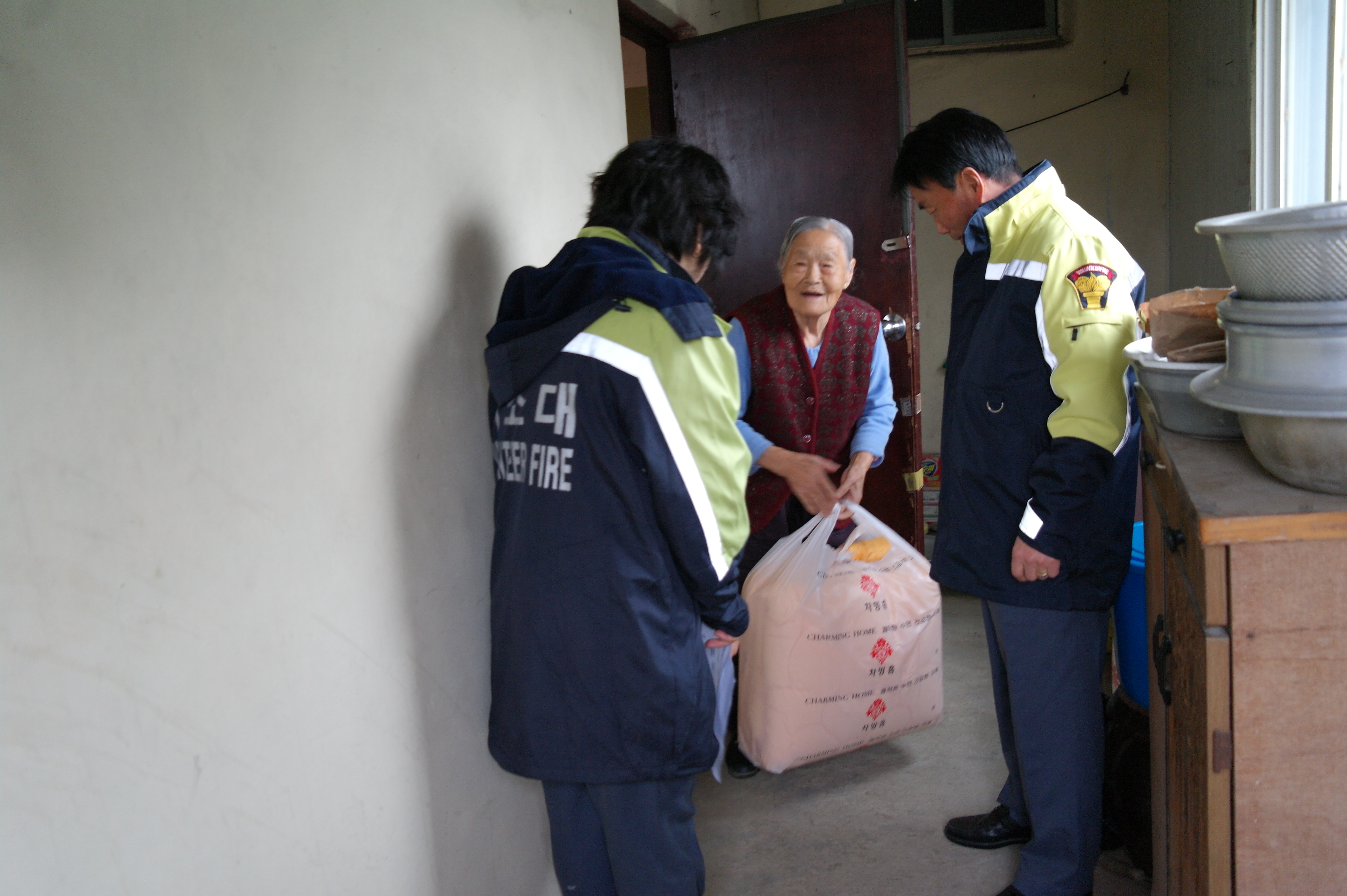어르신들께 이불을...