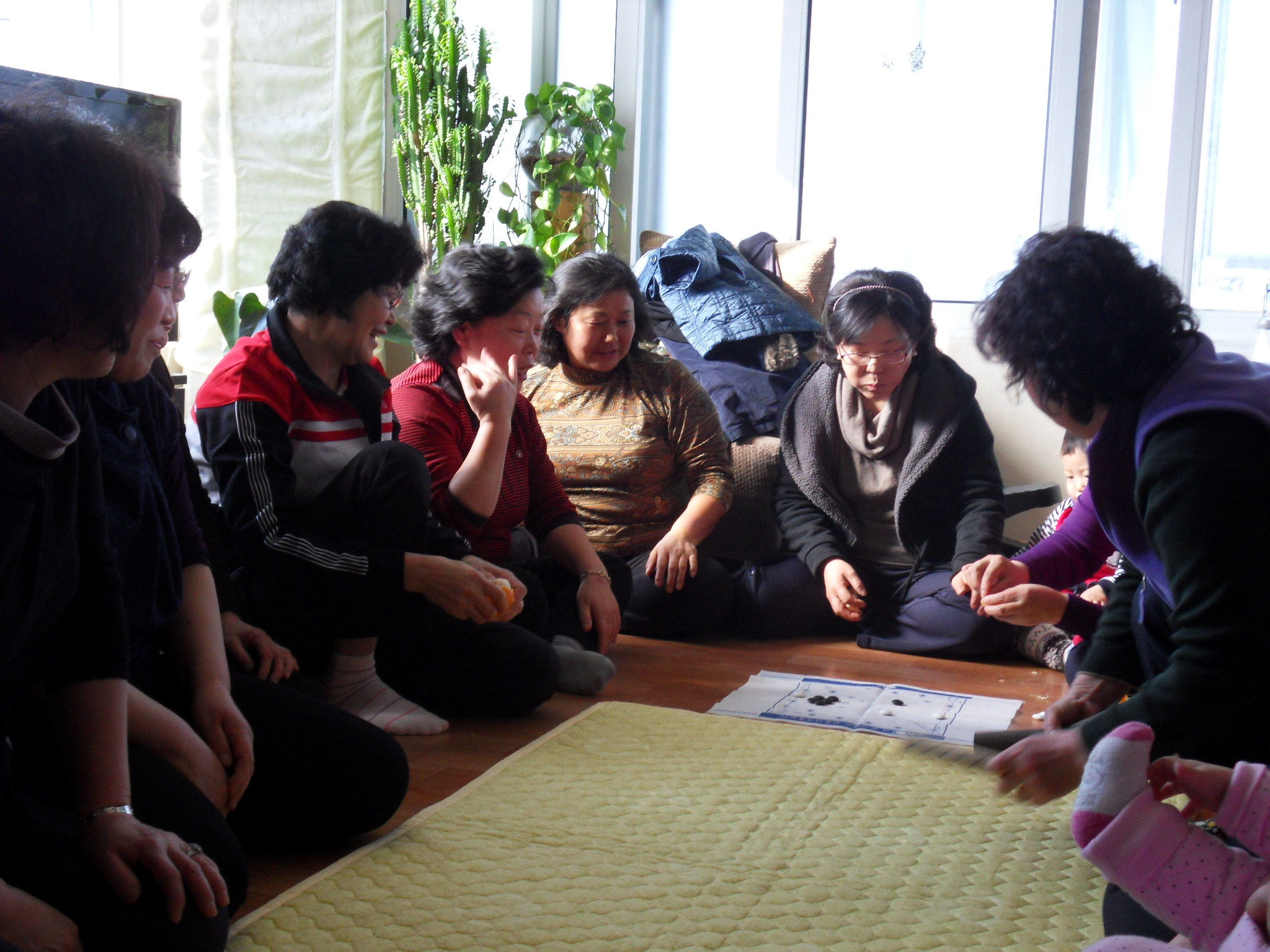 조그만 선물을 준비해놓고 두편을 정해 윷으로 승패를 가르는 여자들의 승부욕에 거실이 떠나갈 듯 하루종일 화기애애한 분위기로 대원들이 화합하는 즐거운 시간을 가졌습니다