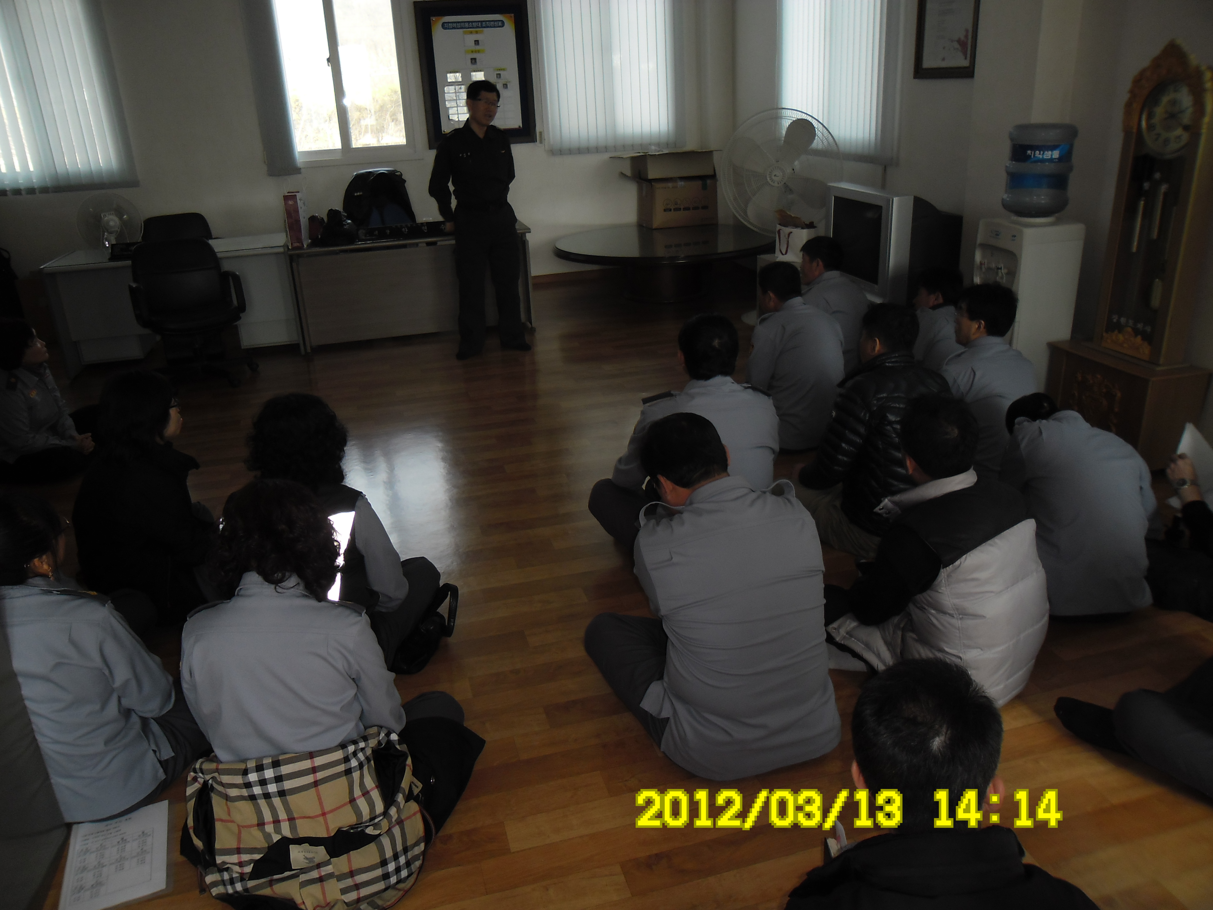 2012년 3월 21일 지정여자의용소방대 (대장 박인수)25명과 지정의용소방대 (대장 한현수)23명은 원주시 소방대의 현장지휘대장님이신 이기중과장님이 오셔서 3월정기교육을 실시하였습니다.