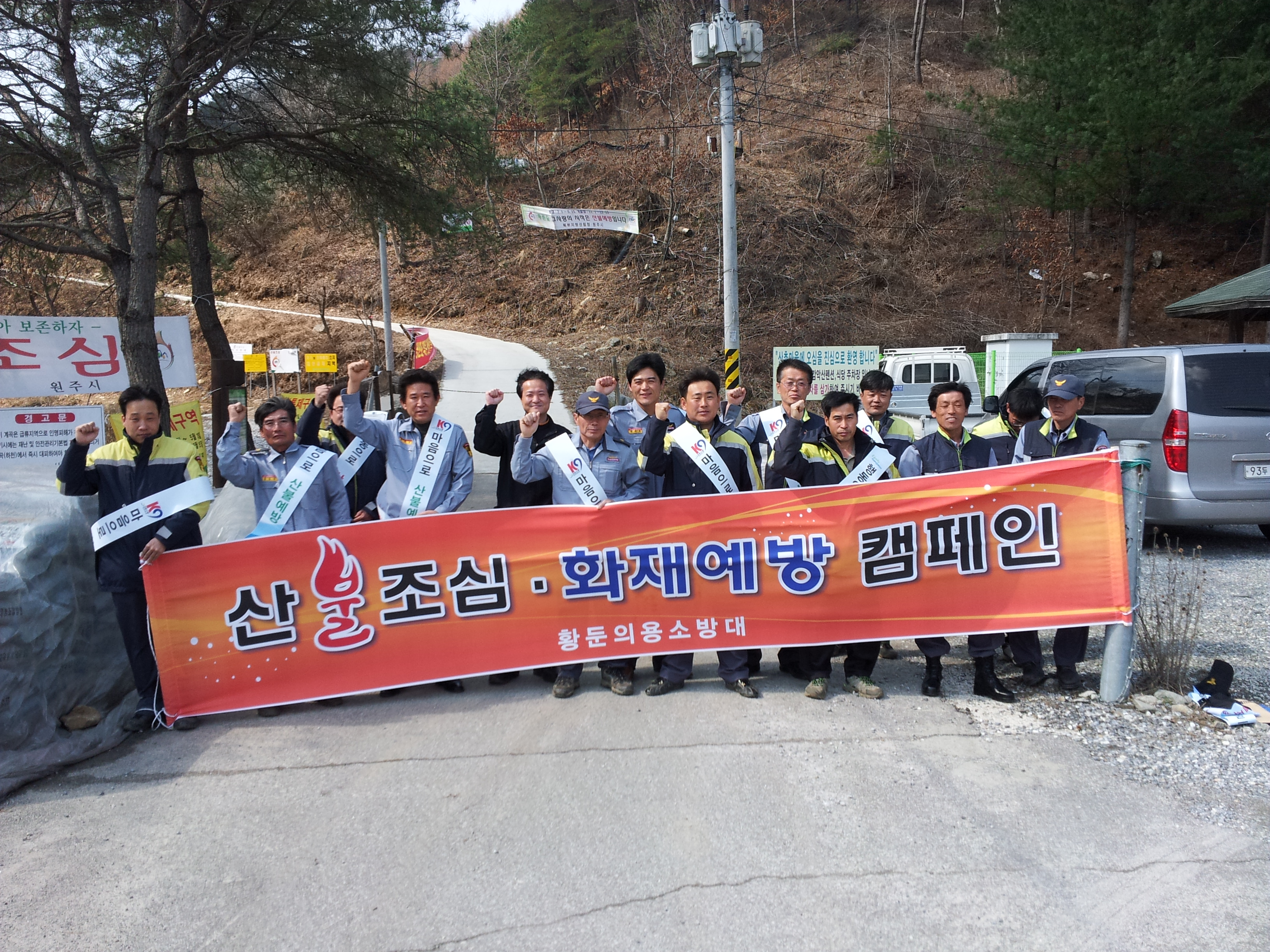 황둔의소대 대장 김재희는 4월5일 감악신입구와 황둔삼거리 농혐앞에서 대원 15명과 원주소방공무원 3명이 참석하여 산불예방홍보를 하였다. 쌀쌀한 날씨였지만 지역을 위한 애향심과 의소대의 자긍심은 더욱 빛났다.