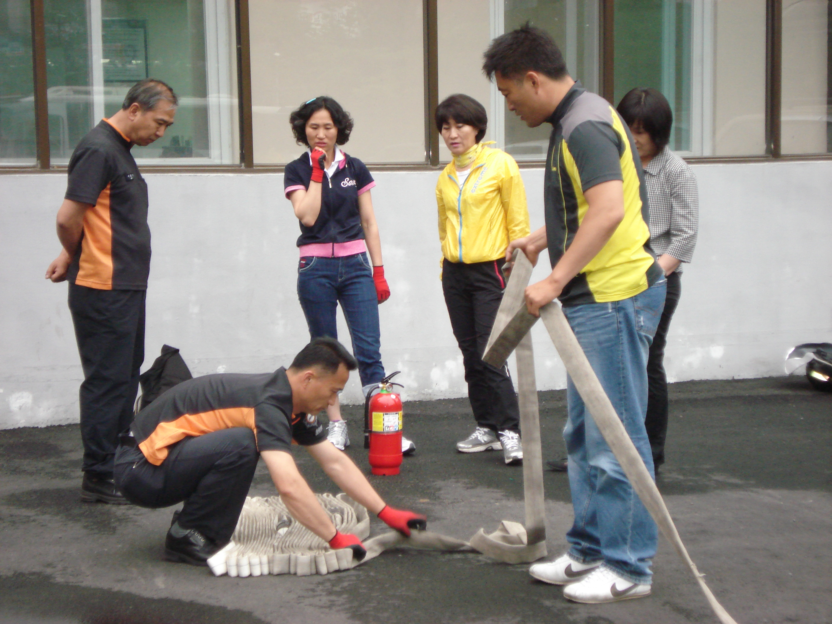 6월5일 도대회에 참가하는 최강팀(100m호스끌기)의 천영덕반장님과 박상주대원 훈련모습입니다.