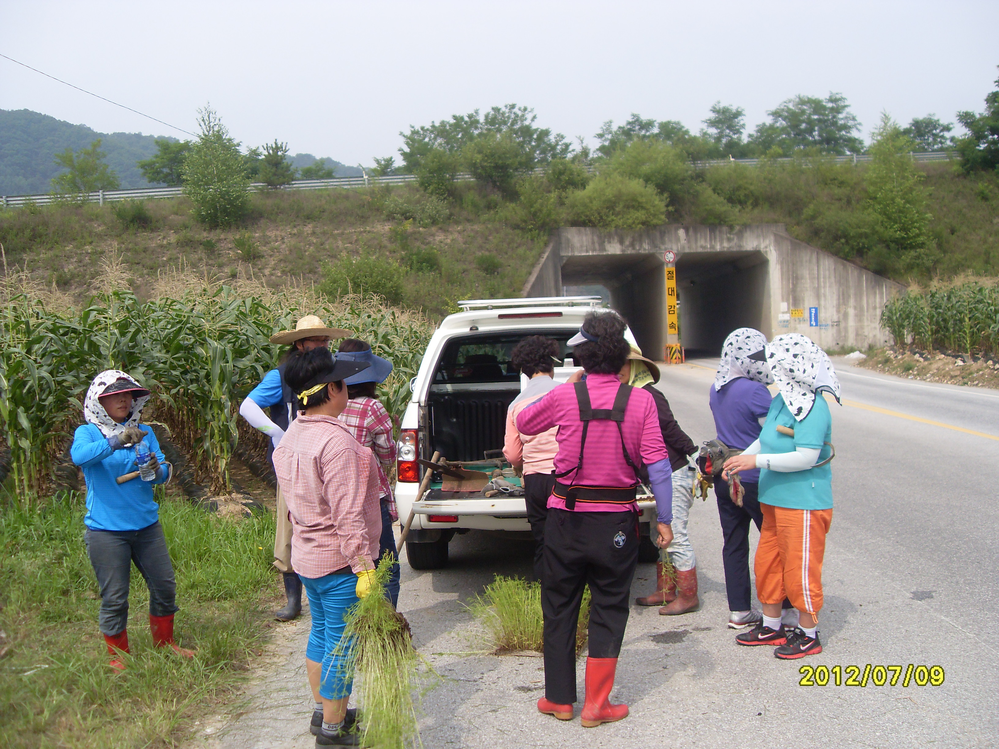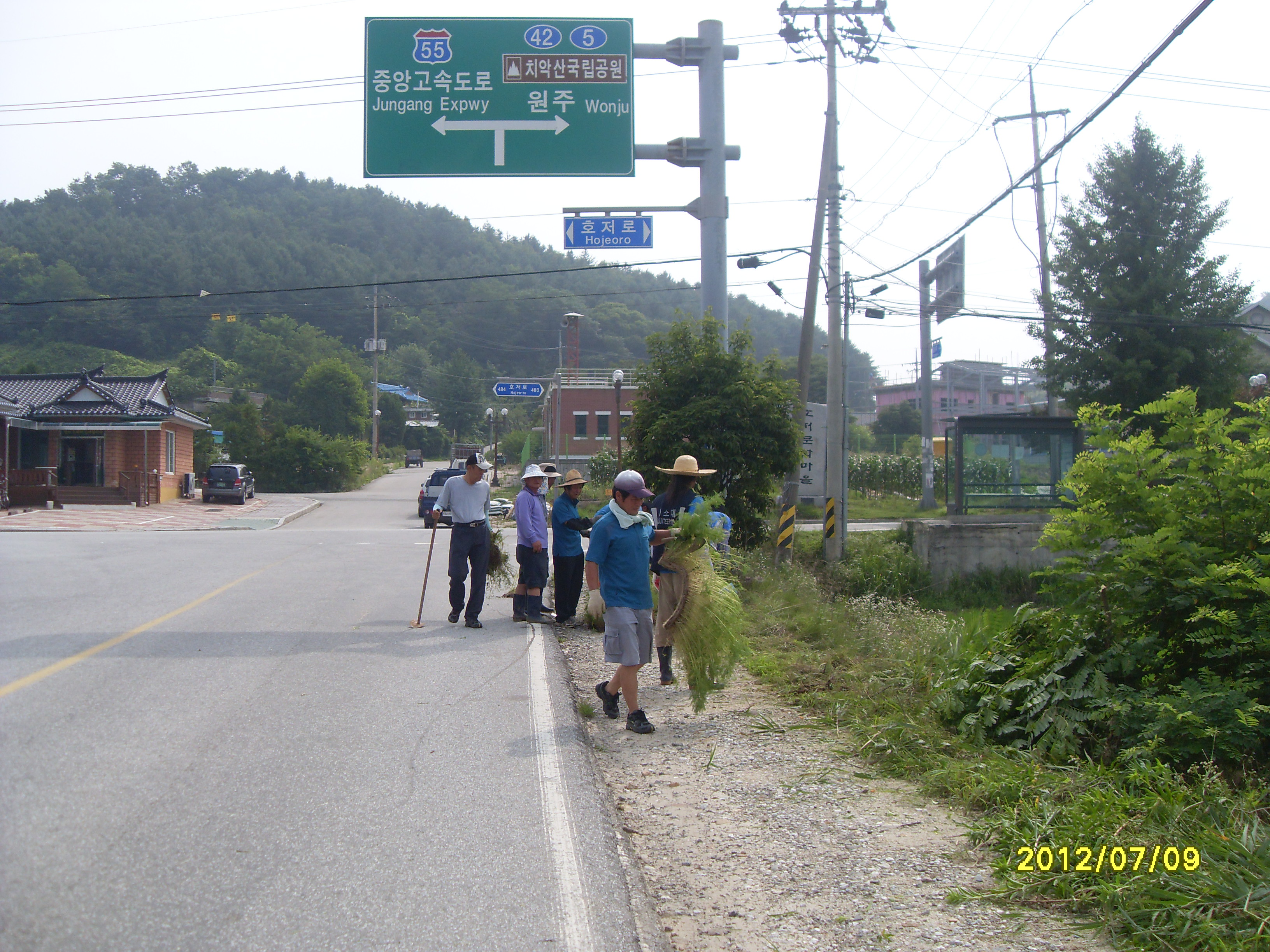 2012년 7월9일 호저 남,녀 의소대 대원은 호저면 도로변에 꽃길 조성 봉사 활동을 진행하였습니다,
