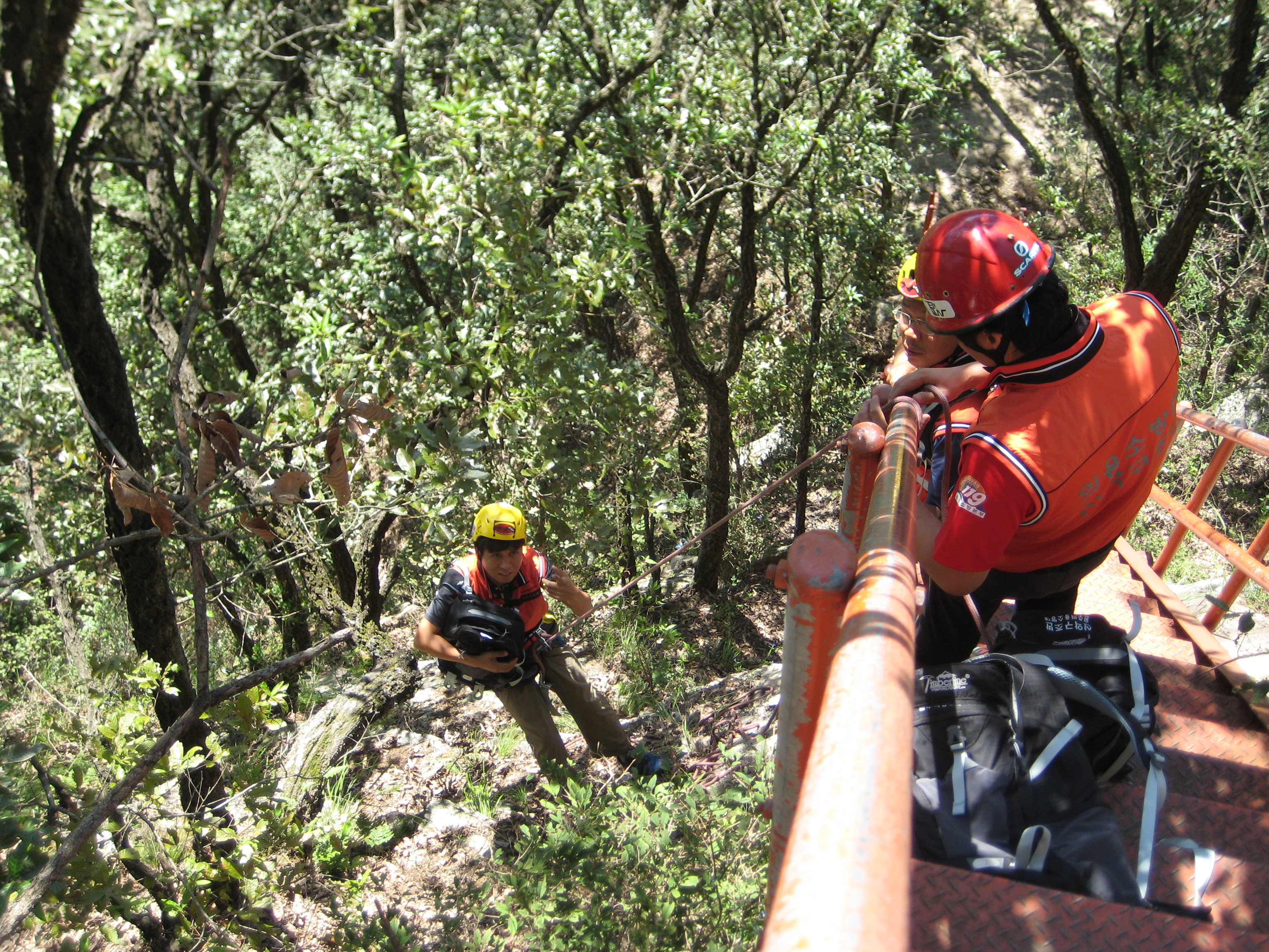 원주의용소방대(대장 조성일) 훈련반대원들은 9월11일 10:00-14:00 까지 소금산 철계단,철난간 아래 절벽에 쌓여있는 쓰레기를 수거하러 자일을 이용하여 직접 대원들이 내려가 약 60리터를 수거했습니다
