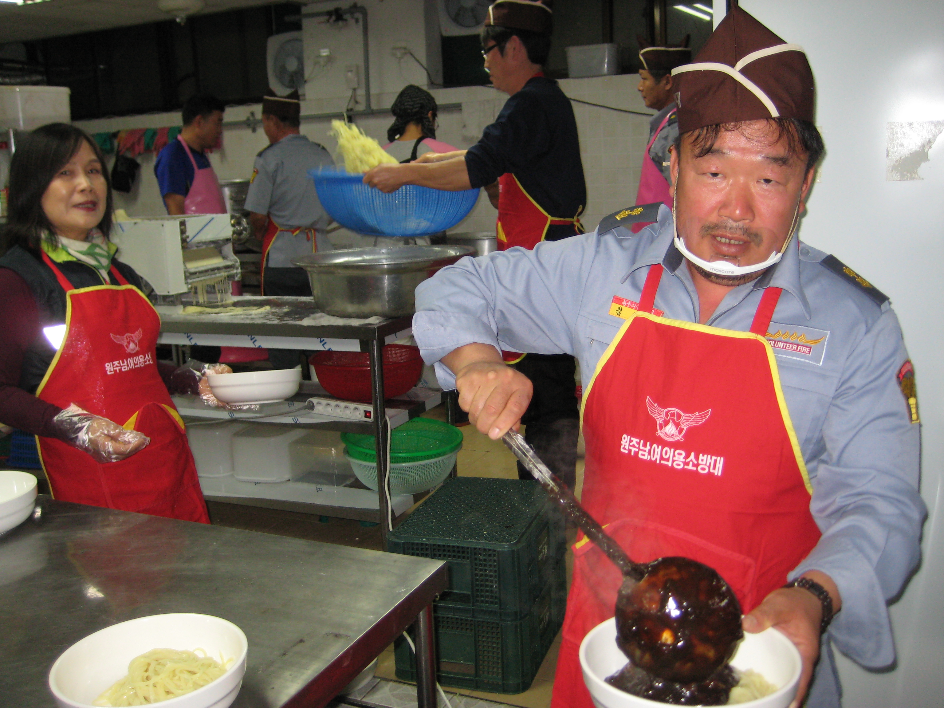원주의용소방대(대장 조성일)는 10월16일 단계동 소망주기 단체에서 어르신 100여명 참가한가운데 원주여성대원들과 함께 자장면 중식을 무료로 제공하였습니다.