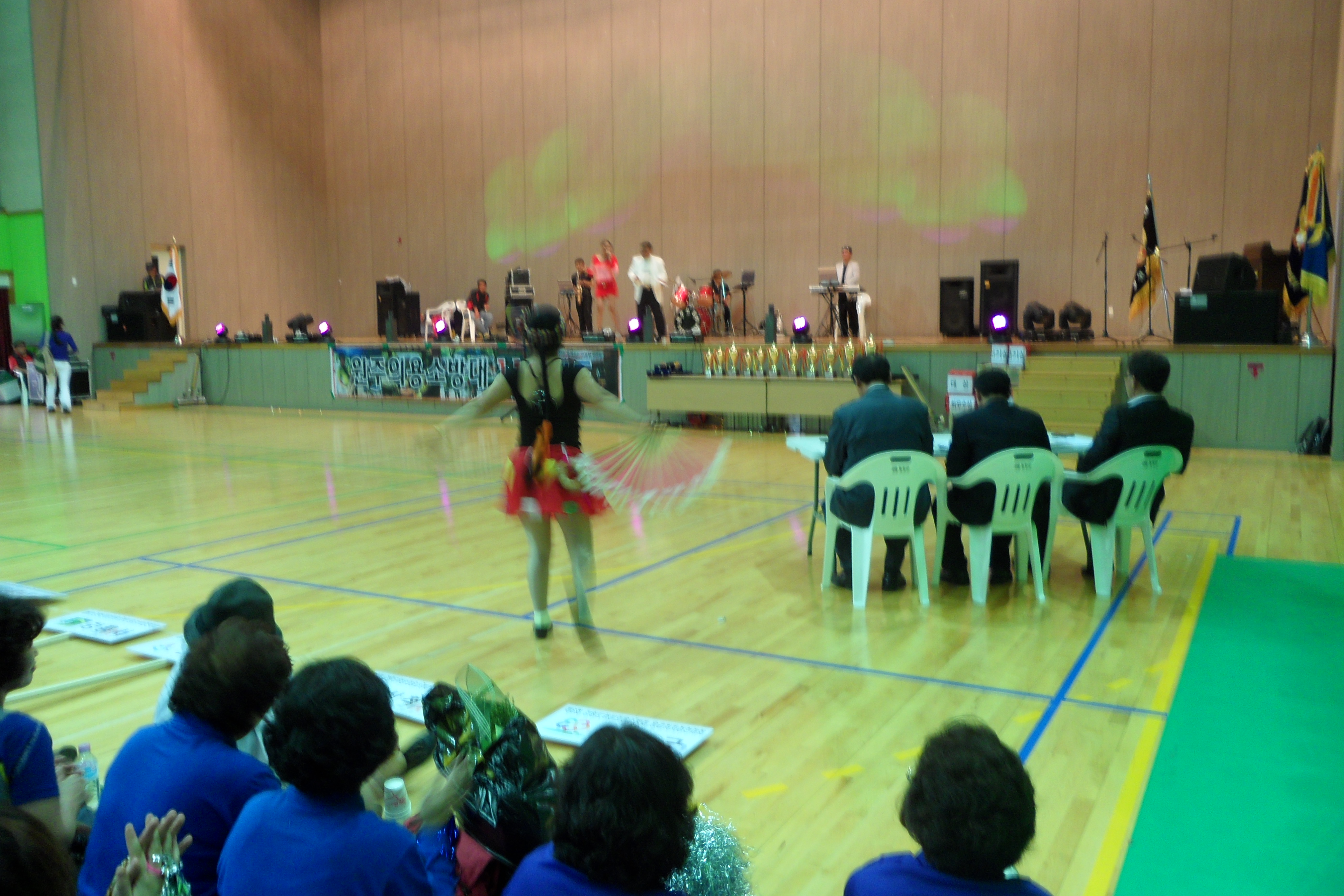 2012년9월20일 지정여성의용소방대 대장 박인수외3명은 제6회강원도지사기 여성의용소방대 응급처치경연대회에 참석하였습니다.박인수대장님께서 삐에로 분장을 하시고 열띤 응원을 하셨습니다.