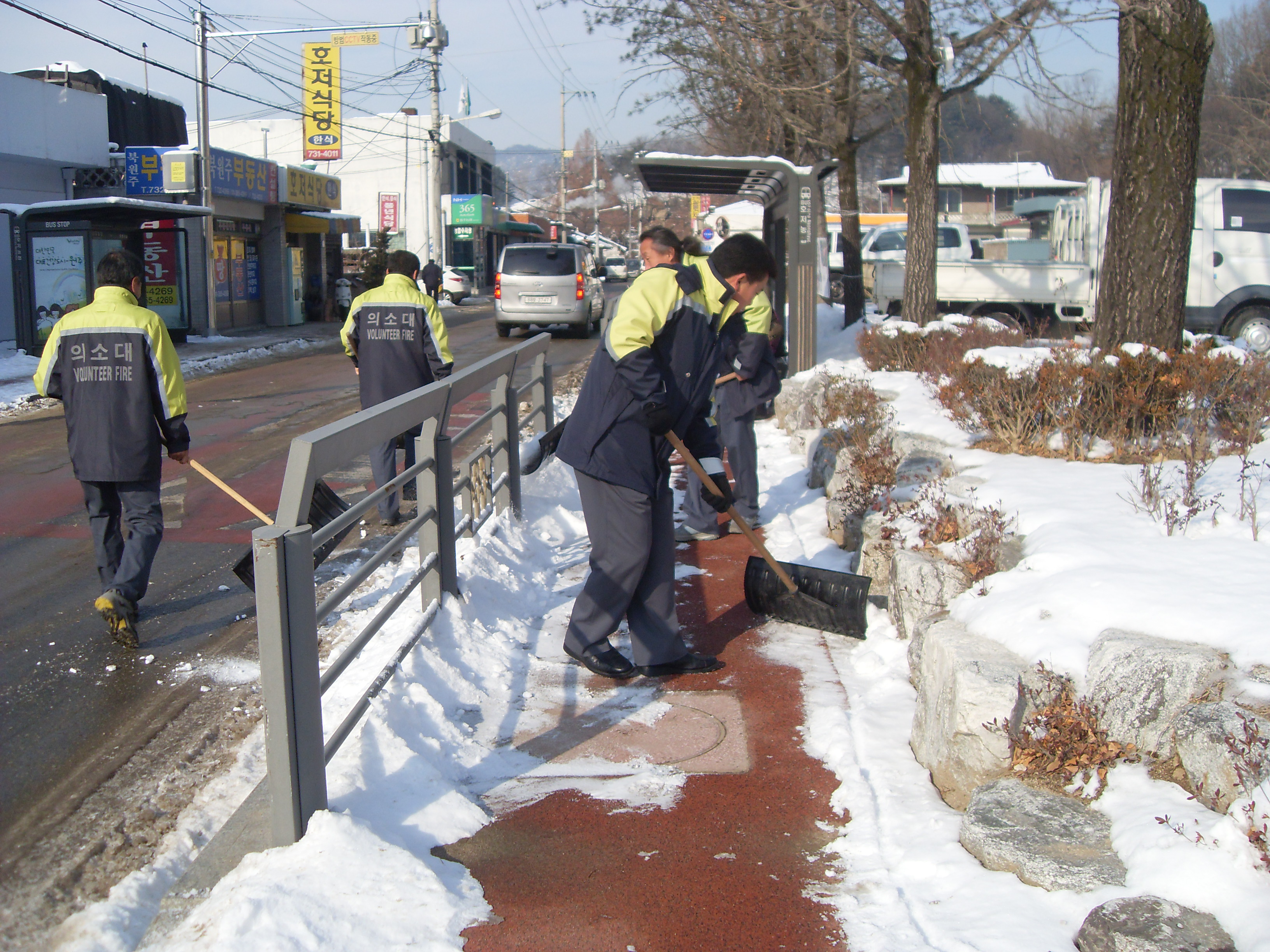 인도가 눈으로 보행자의 이동이 불편하여 호저의용소방대원이