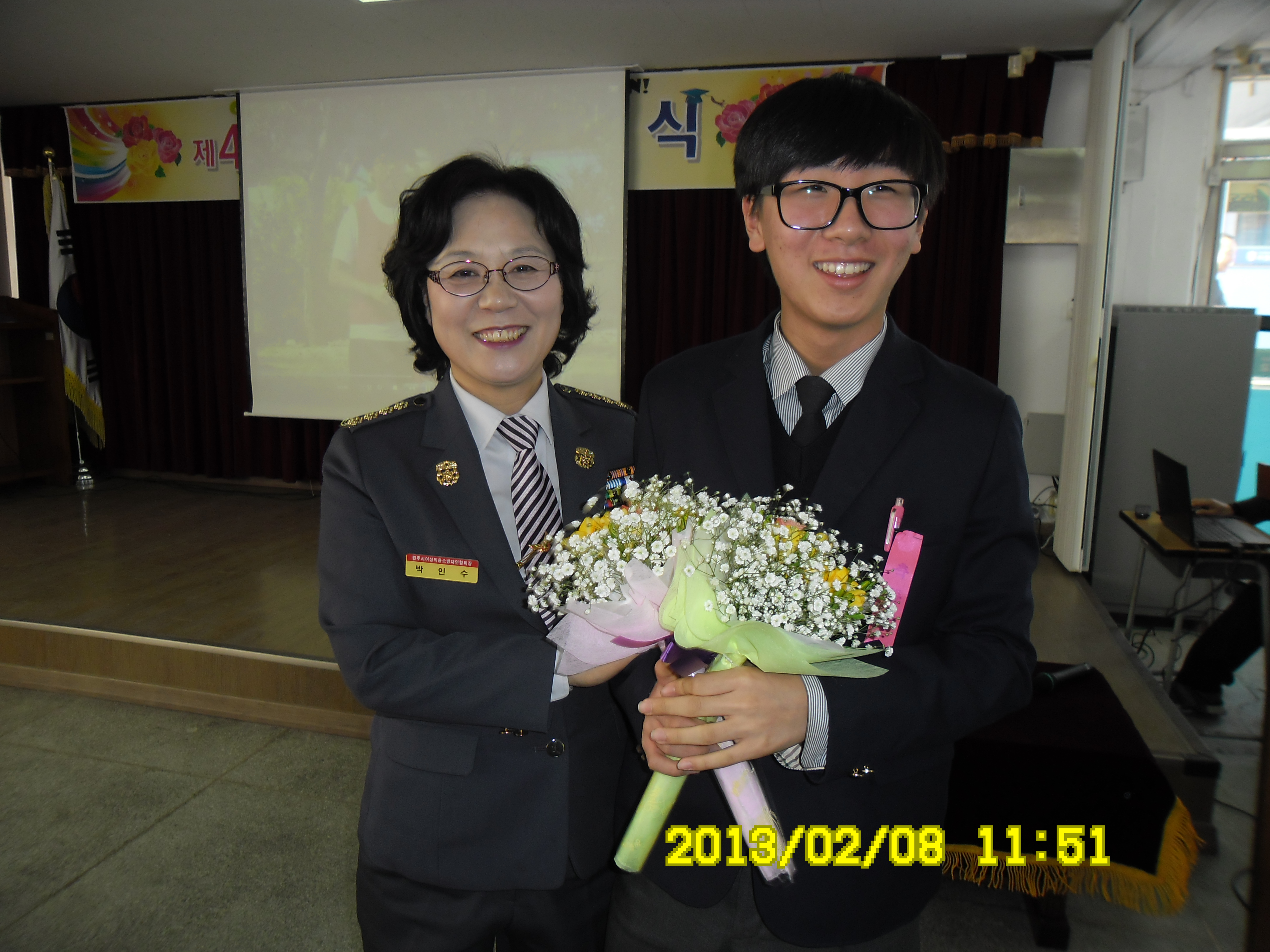 2013년2월8일 지정여자의용소방대에서는 지정중학교 졸업식에 참석하였습니다.