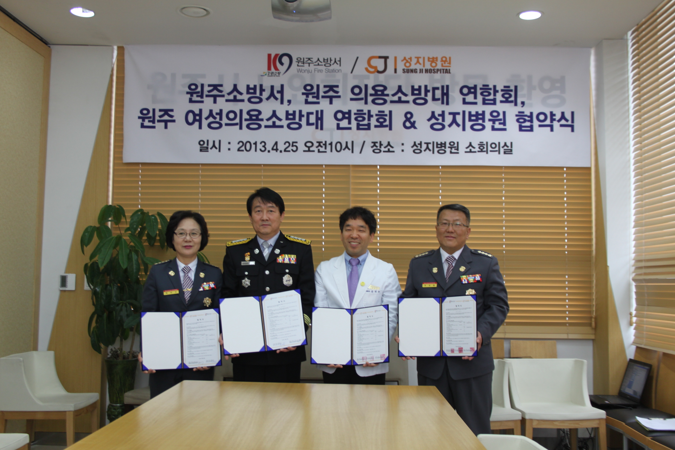 원주시남여의용소방대연합회와 성지병원과 업무 협약을 체결하였습니다.