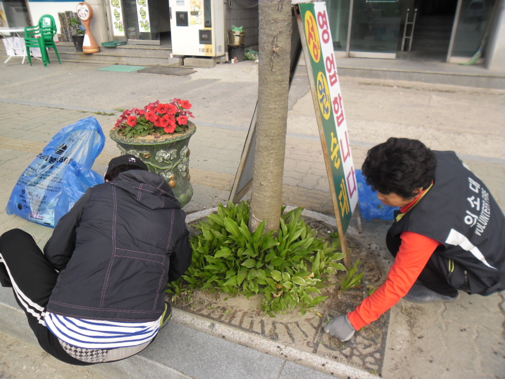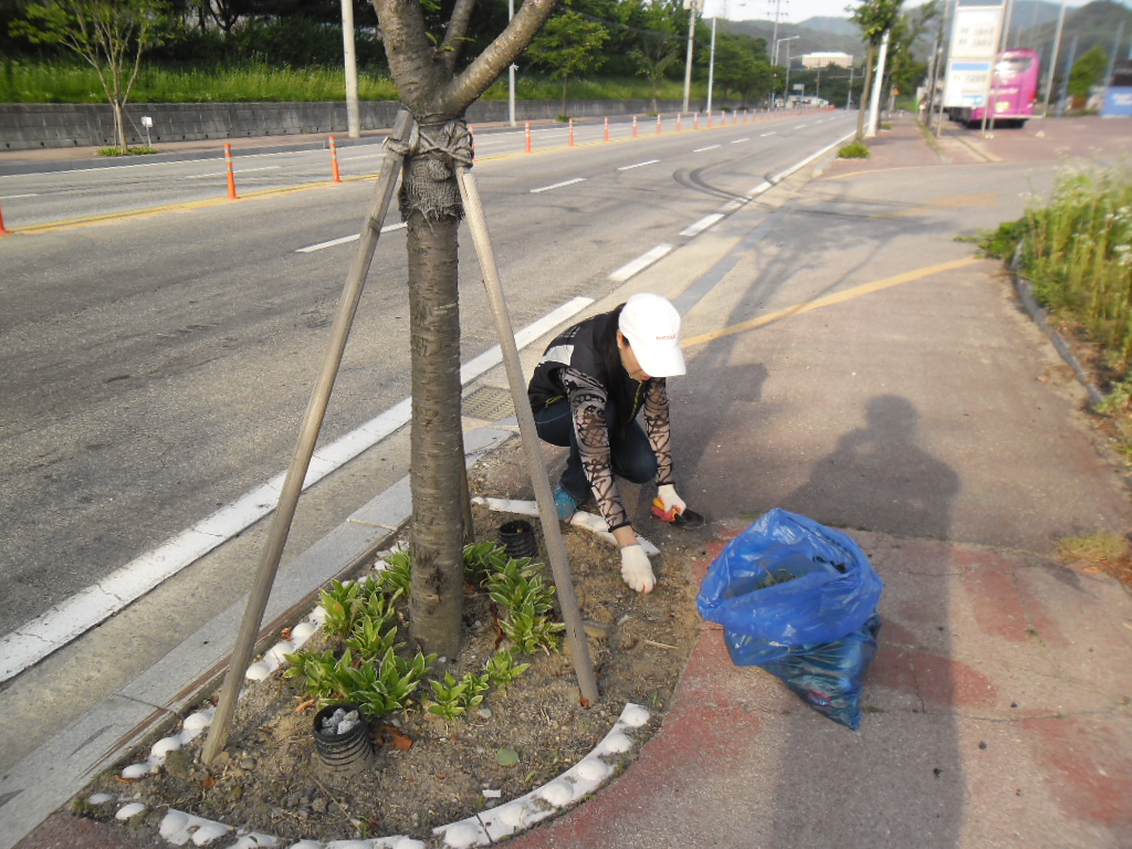 비비츄 잡초제거와 꺠끗한 거리 만들기 를 위해 쓰레기 줍기를 실시하였습니다
