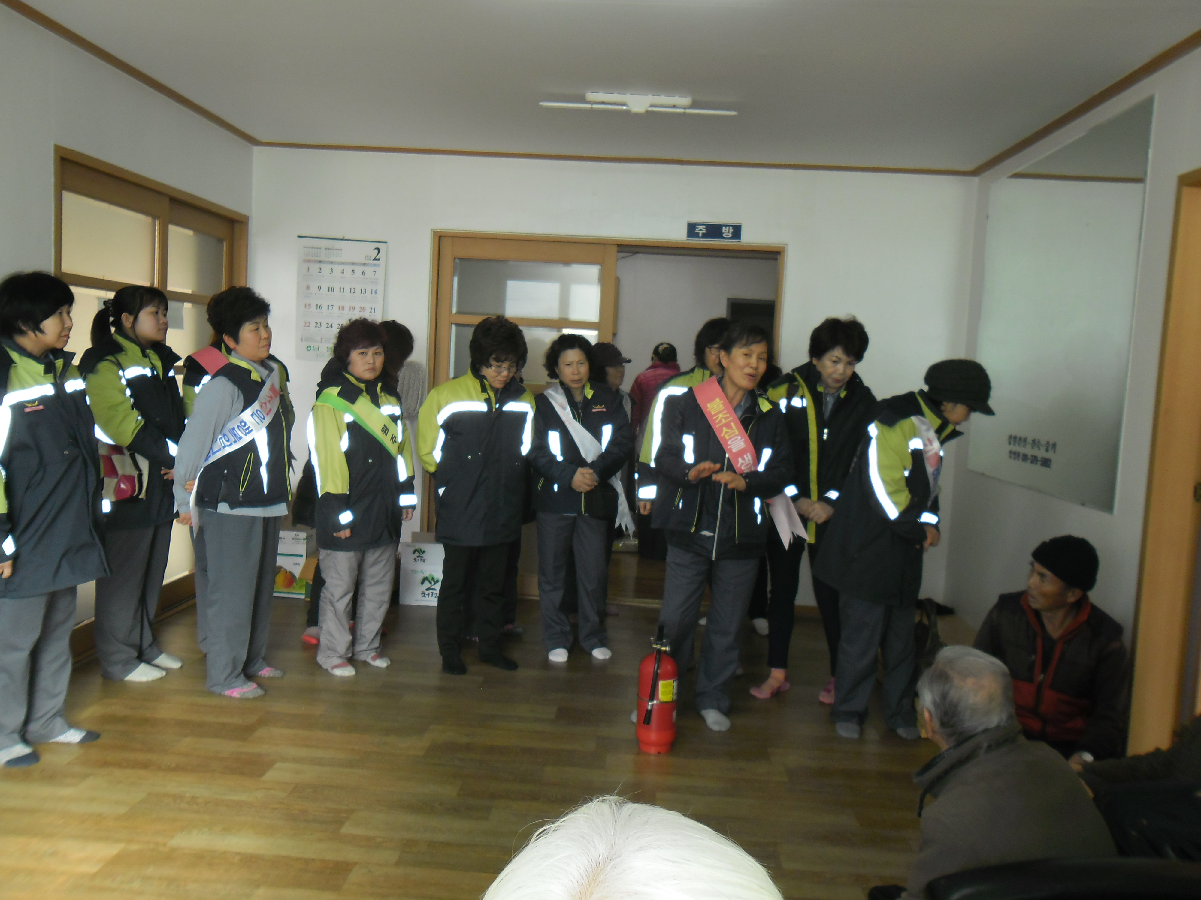 조례안 변경사항설명 및 회관방문 노인분들께 소화기 사용법을 설명해 드렸습니다