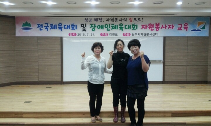 김영연대장님 취임이후 첫 공식행사가 7월24일 시청에서 전국체육대회및 장애인체육대회 봉사자교육에 참여하셨습니다 (김영연대장님 권옥희부장님 이미자부장님)