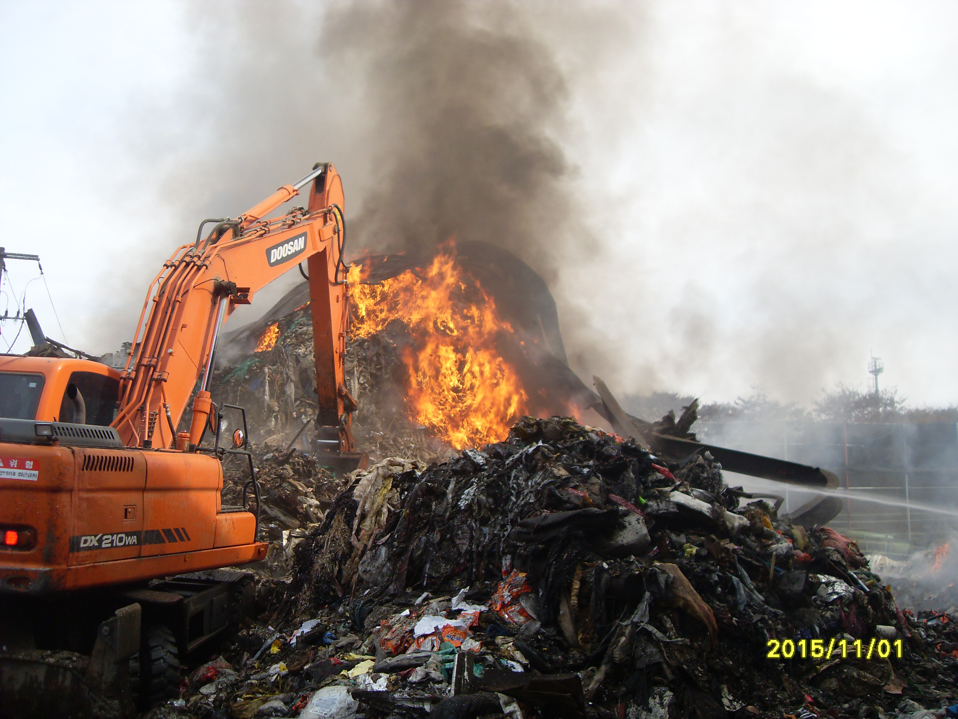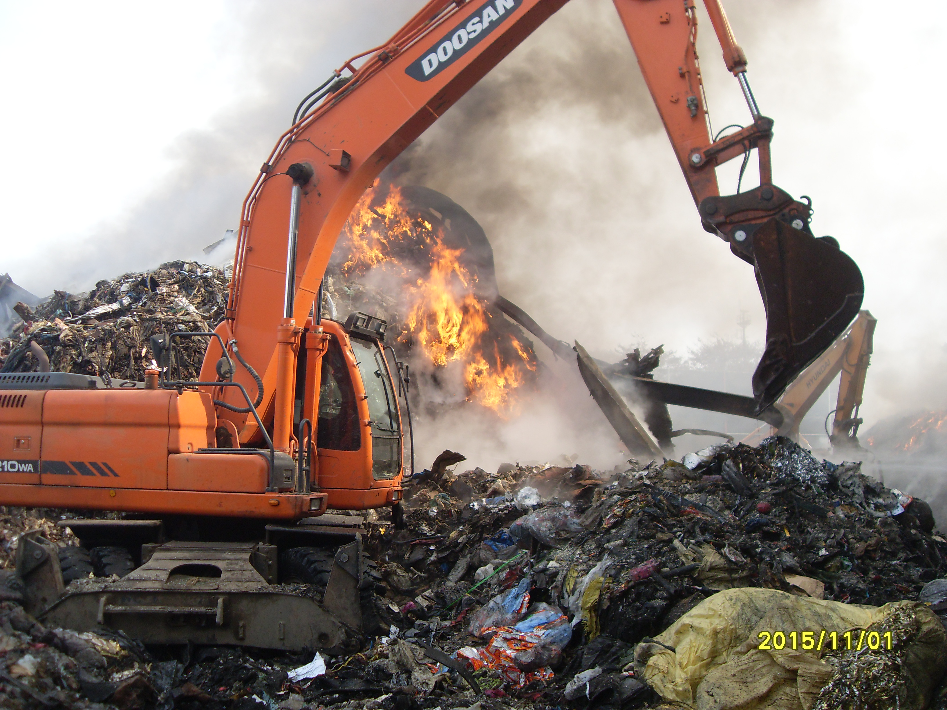큰불길은 11월1일 오전에 잡았으나 폐기물에 붙은 불길이 계속 발화하여 굴삭기를 동원
