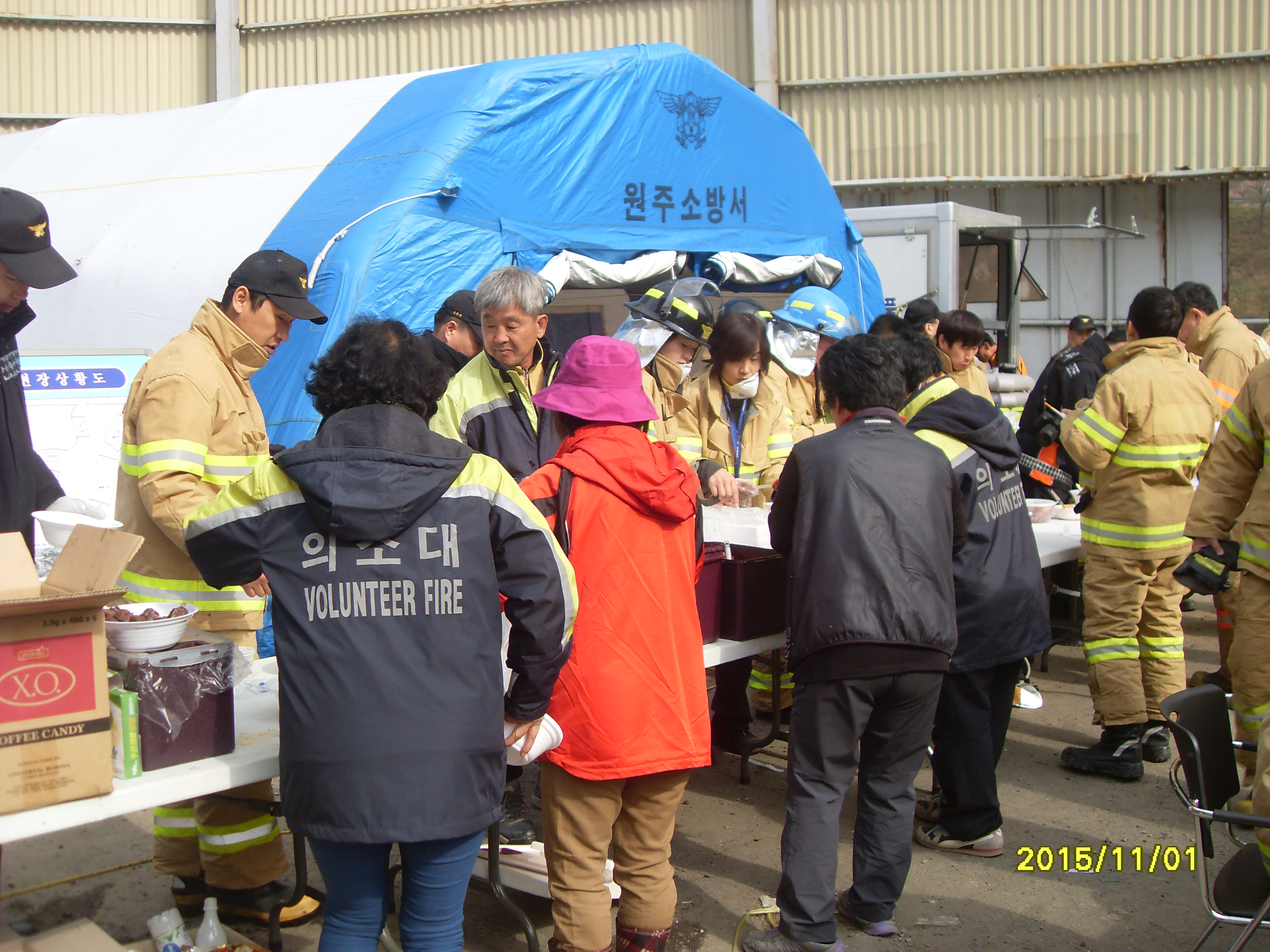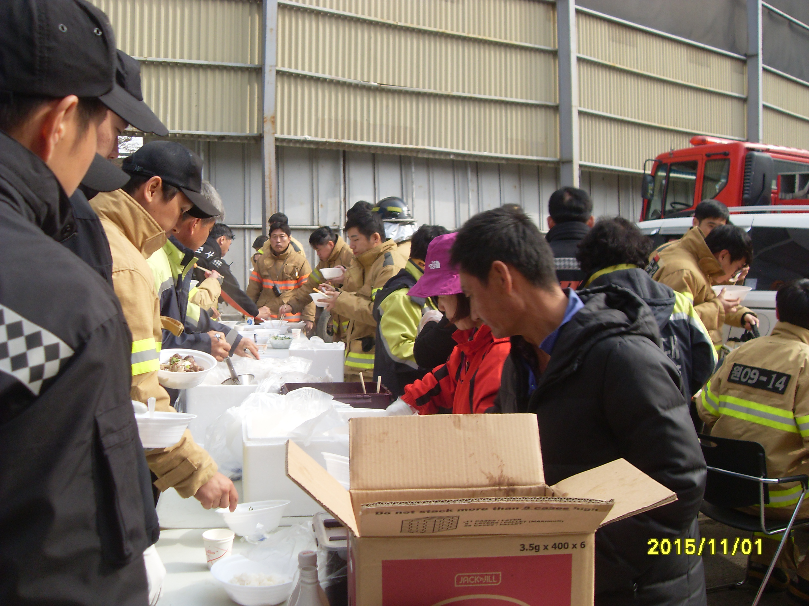 호저의용소방대는 많은 소방 장비와 인력의 출동으로 인하여 도로 교통정리 봉사 식수 간식