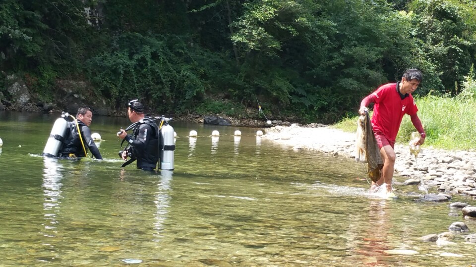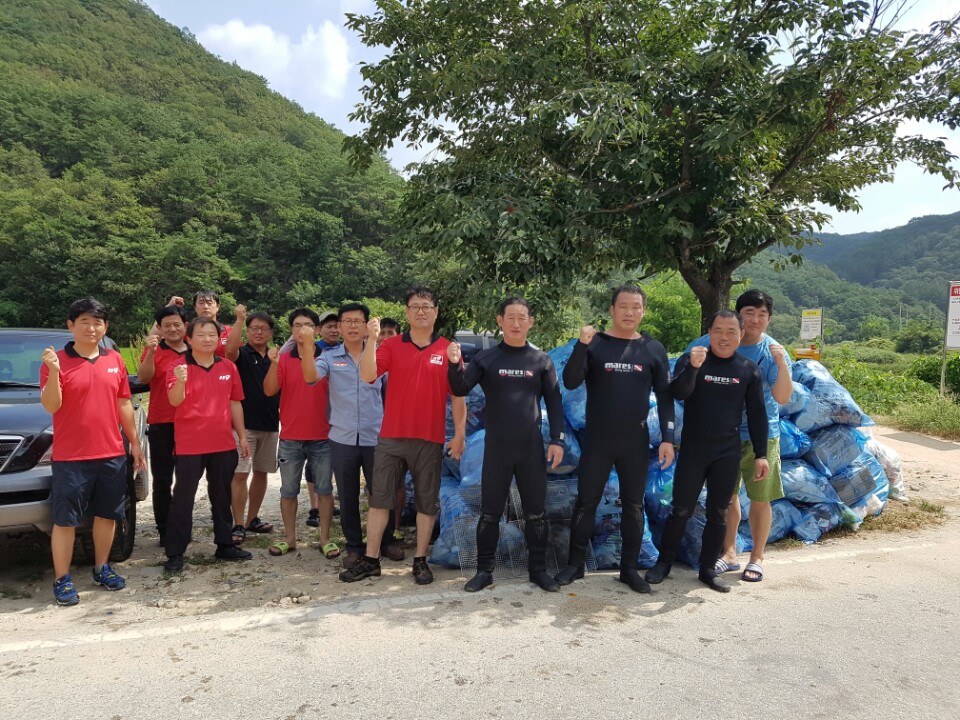 칠봉 (산현교 ) 수중정화 캠페인 및 주변쓰레기 청소 및 산불예방과 물놀이 안전에 대한 캠페인 실시