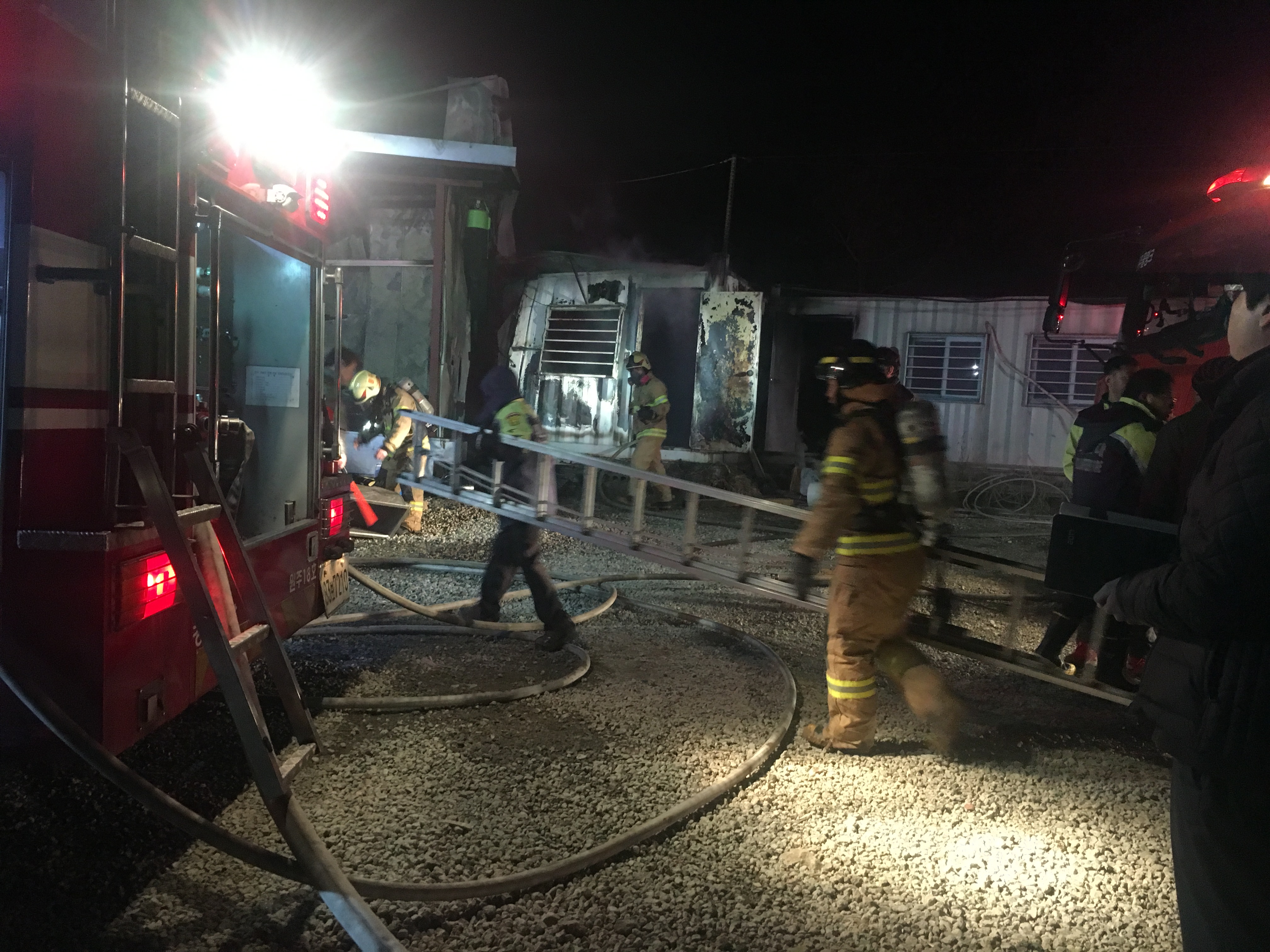 창고에서 화재가 발생하여 출동하였습니다.