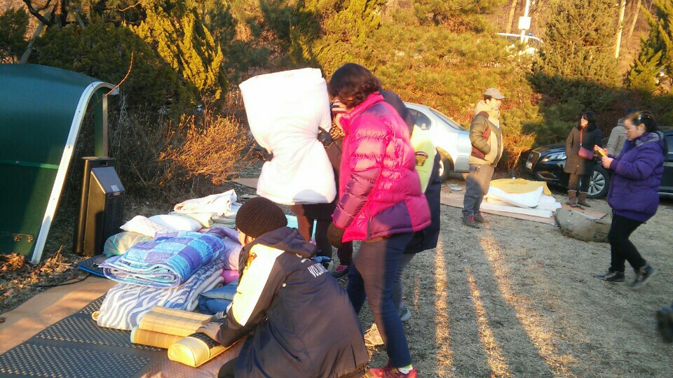 보호하기 위해 일사분란하게 내부의 집기류 및 살림도구들을 마당으로 이동시켜