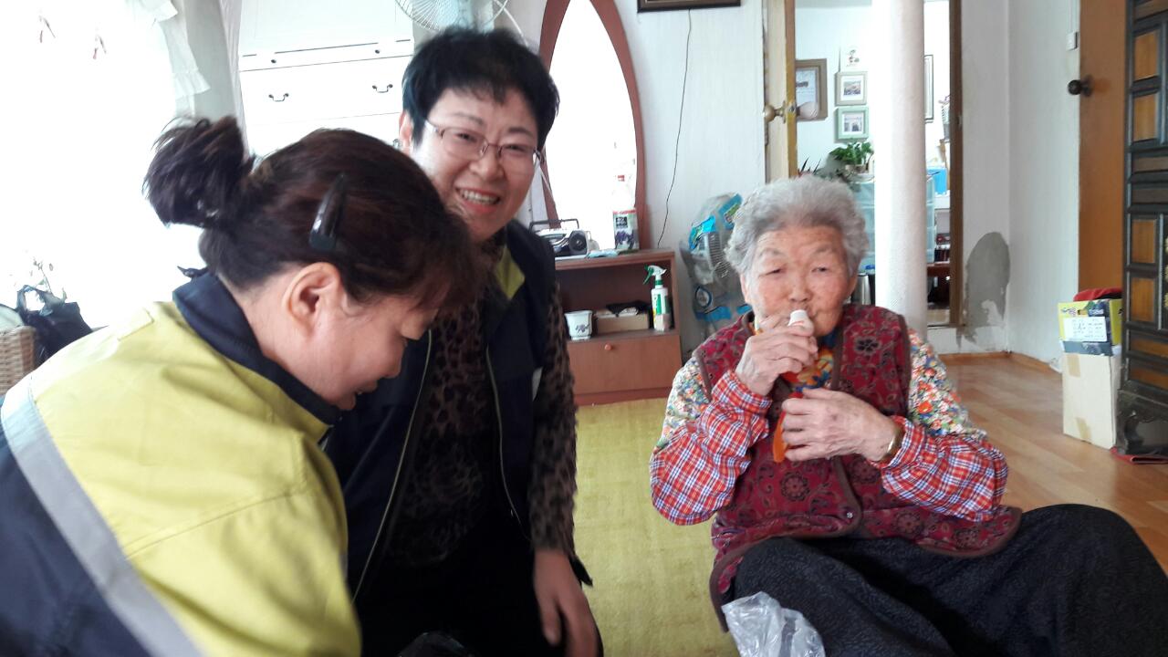 관내 독거노인들에게 반찬과 야쿠르트를 나누어드리고
