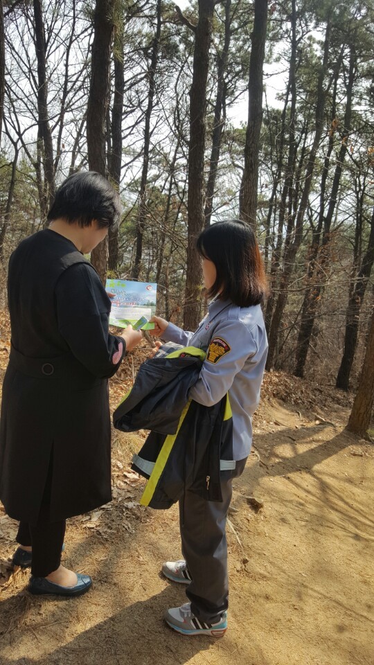 내용: 청명,한식맞이 산불예방 활동을 단계동 봉화산일원에서 등산객들에게 산불예방 홍보 전단지와 산불예방에 대한 당부 말씀도 전달하였습니다.