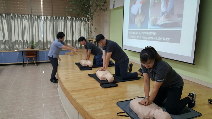 내용: 원주소방서 주관으로 밥상공동체 직원분들과 소방안전교육및 심폐소생 교육에 참여 하였습니다