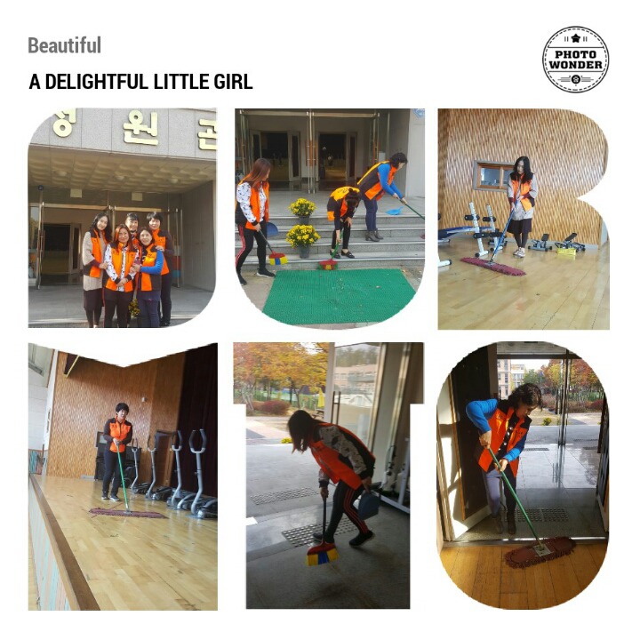 내용: 체육관 실내 바닥청소 및 입구먼지제거 쓰레기분리수거