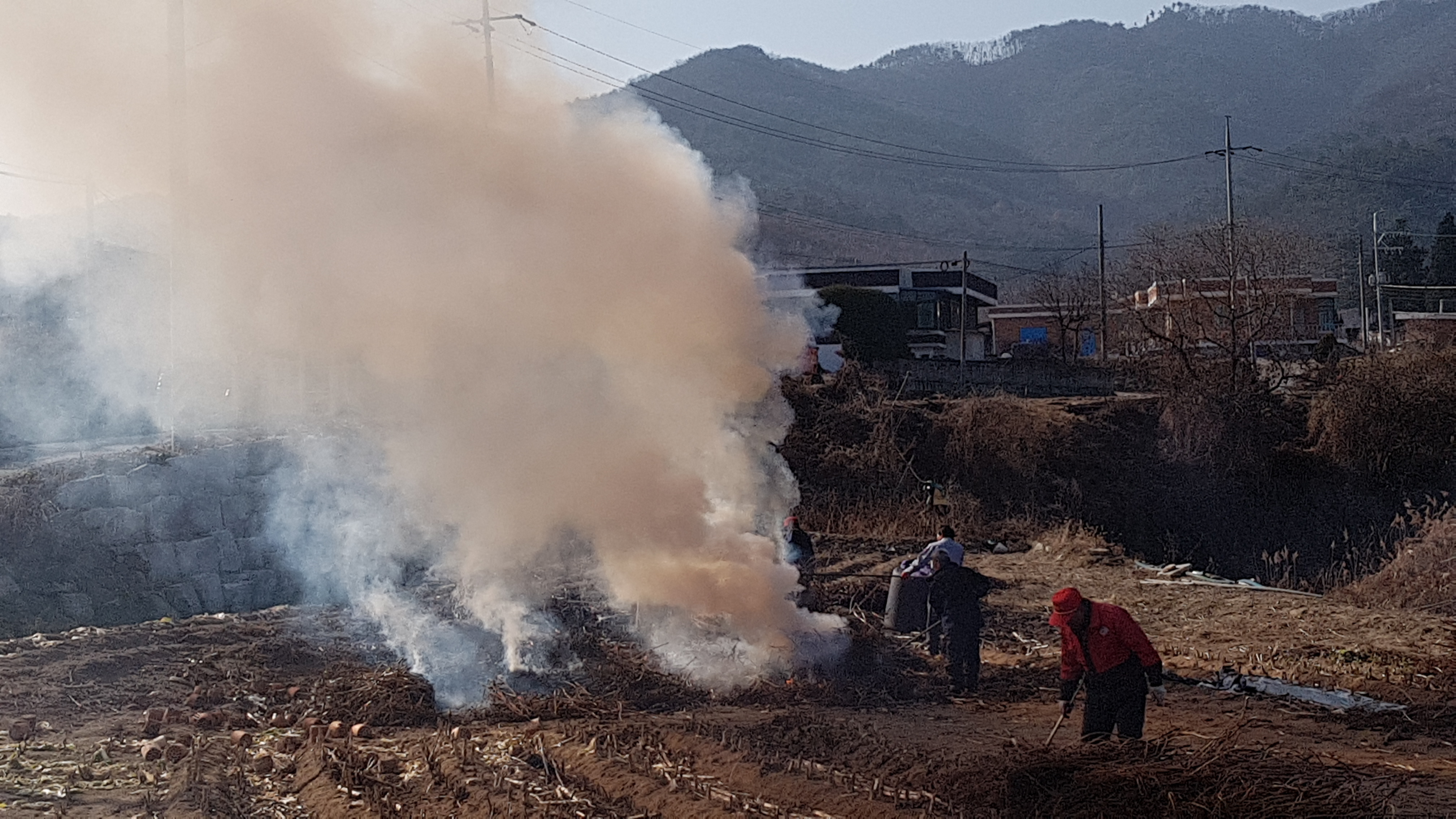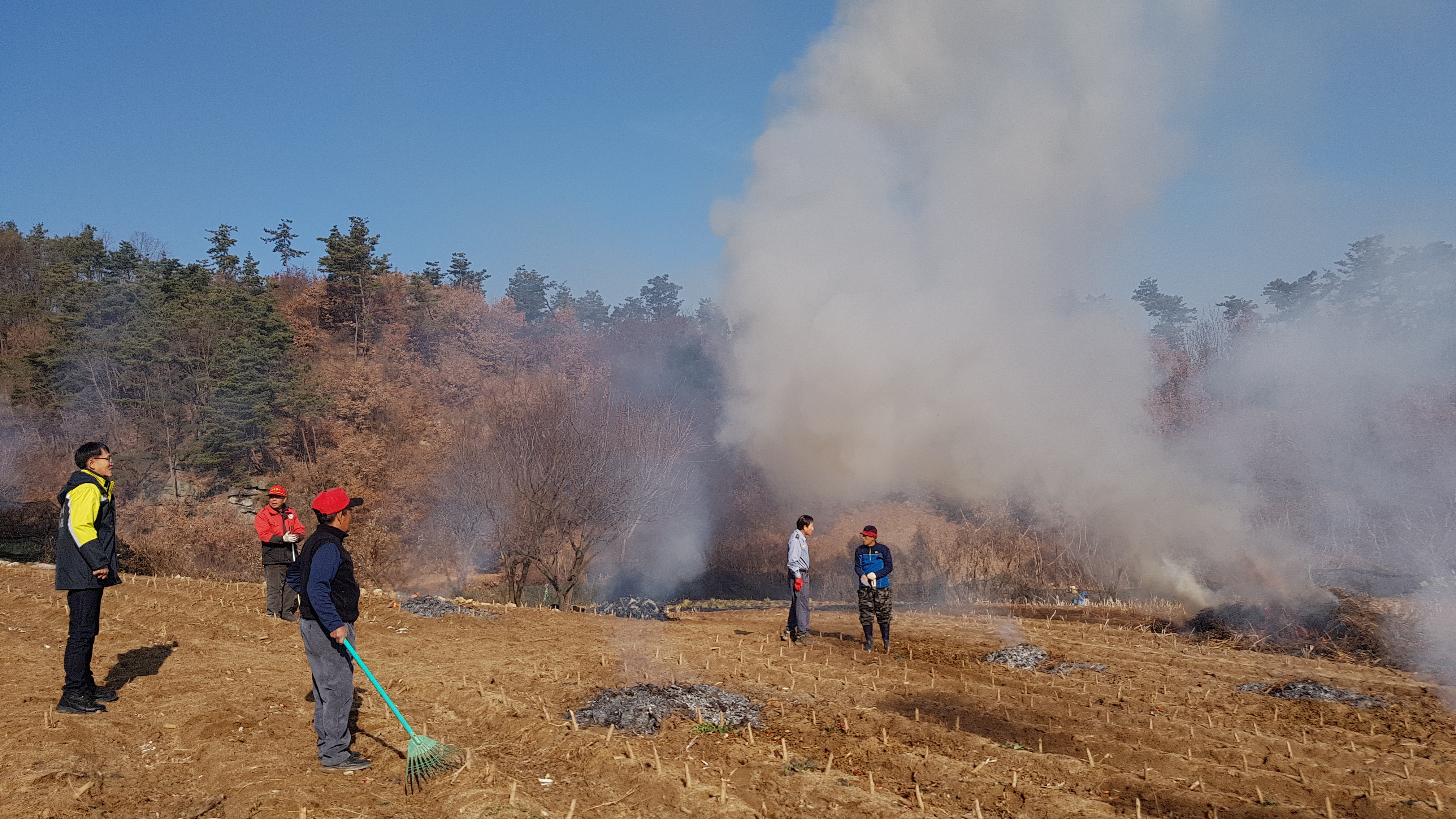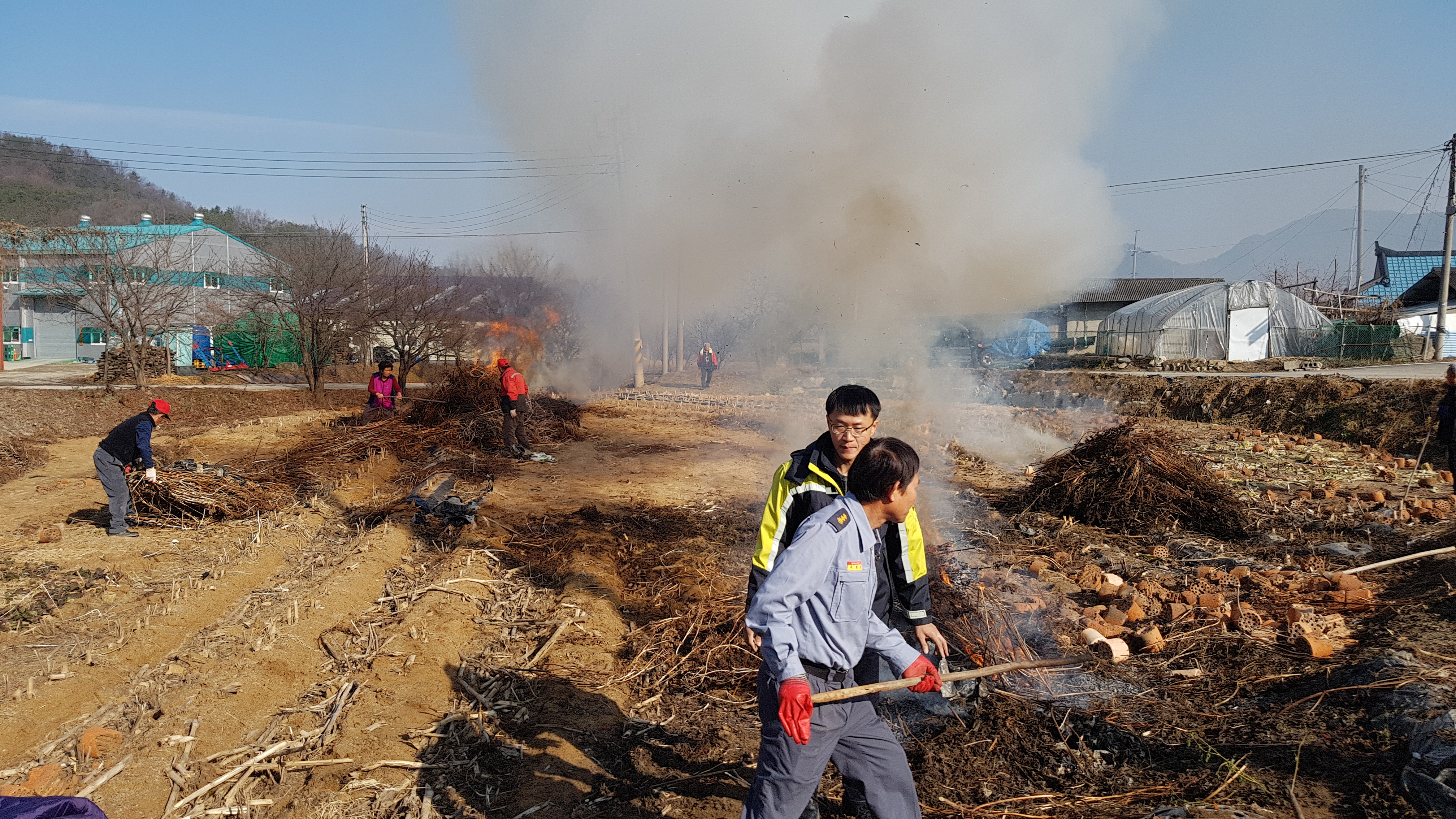 흥업면 사제1리,2리,3리 밭,논두렁 및 잔재물 태우기 공동소각하는
