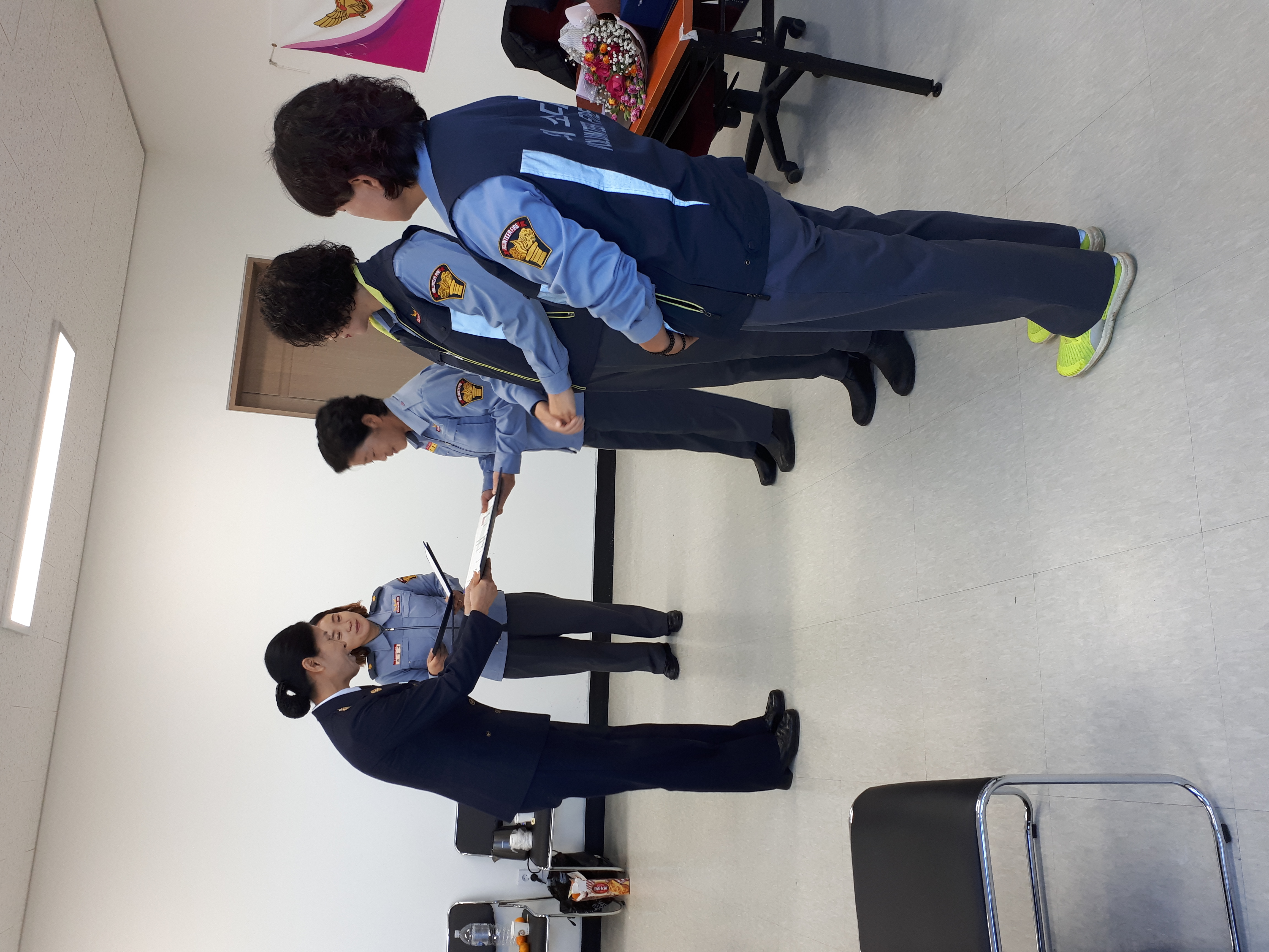 대원들의 심폐소생술 강사자격을 취득한 대원들의 치하