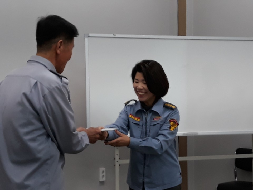 이날 교육과 함께 대원 자녀 중학교 졸업 장학금 전달도 함께 하였습니다.