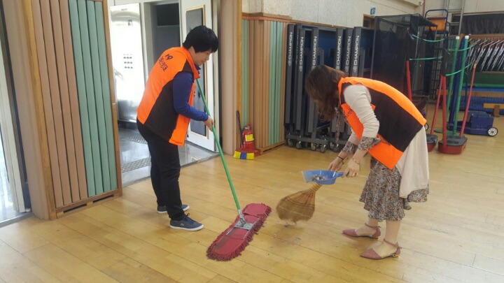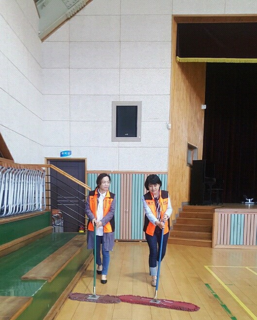 내용: 체육관 실내 바닥청소 및 입구먼지제거 쓰레기분리수거