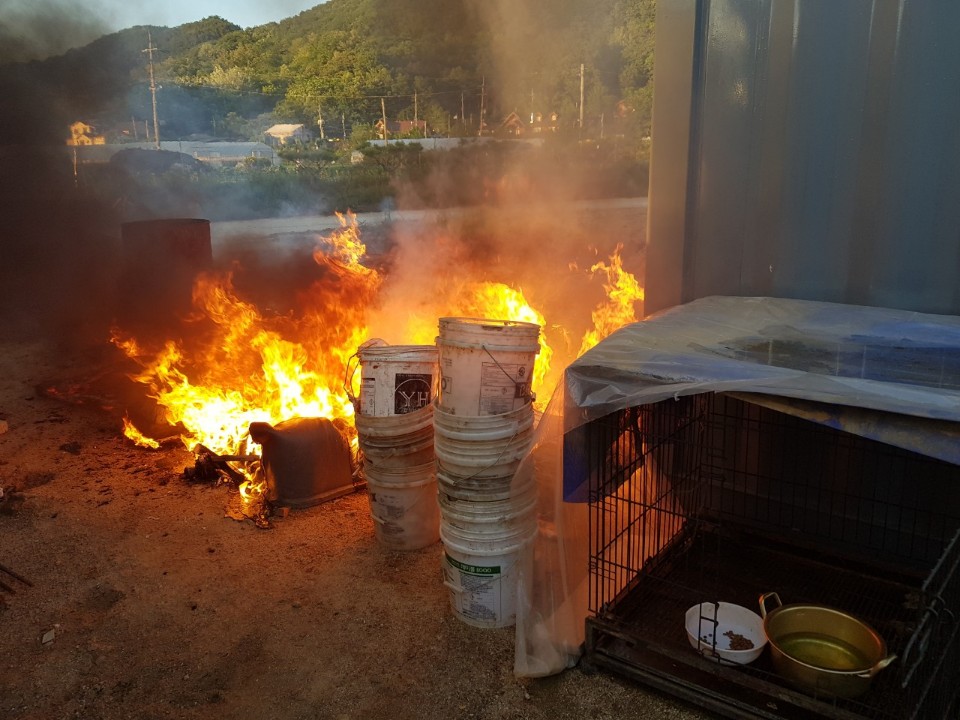 소방서 신고후 애완동물 구출 및 확산방지