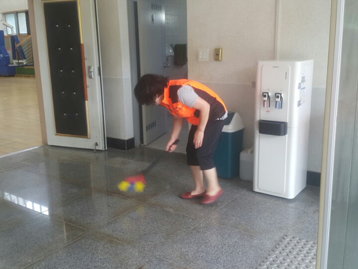 내용: 체육관 실내 바닥청소 및 입구먼지제거 쓰레기분리수거