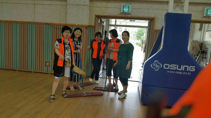 내용: 체육관 실내 바닥청소 및 입구먼지제거 쓰레기분리수거