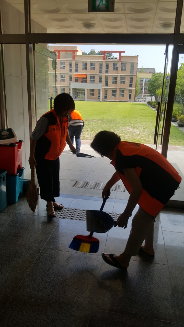 내용: 체육관 실내 바닥청소 및 입구먼지제거 쓰레기분리수거