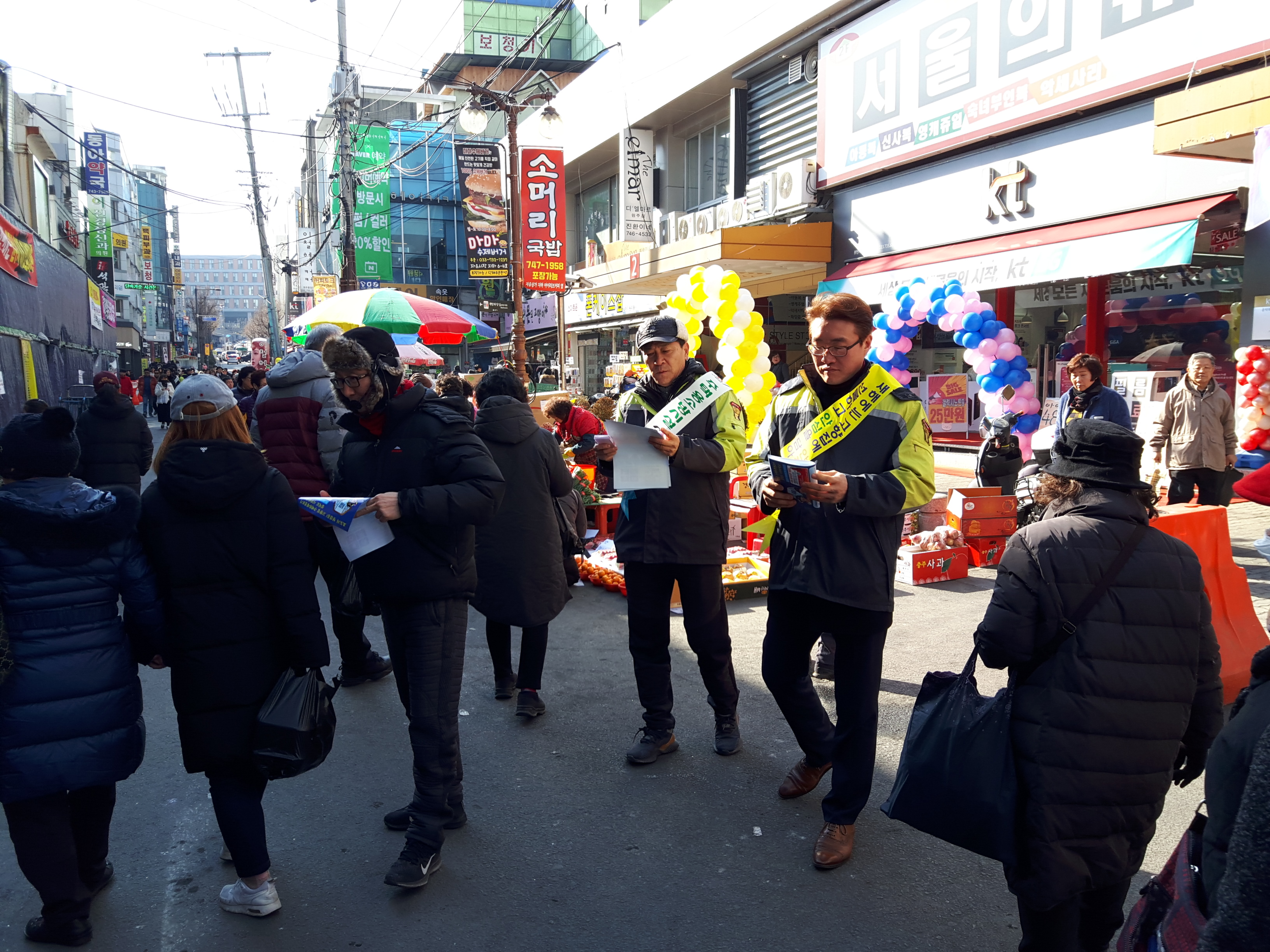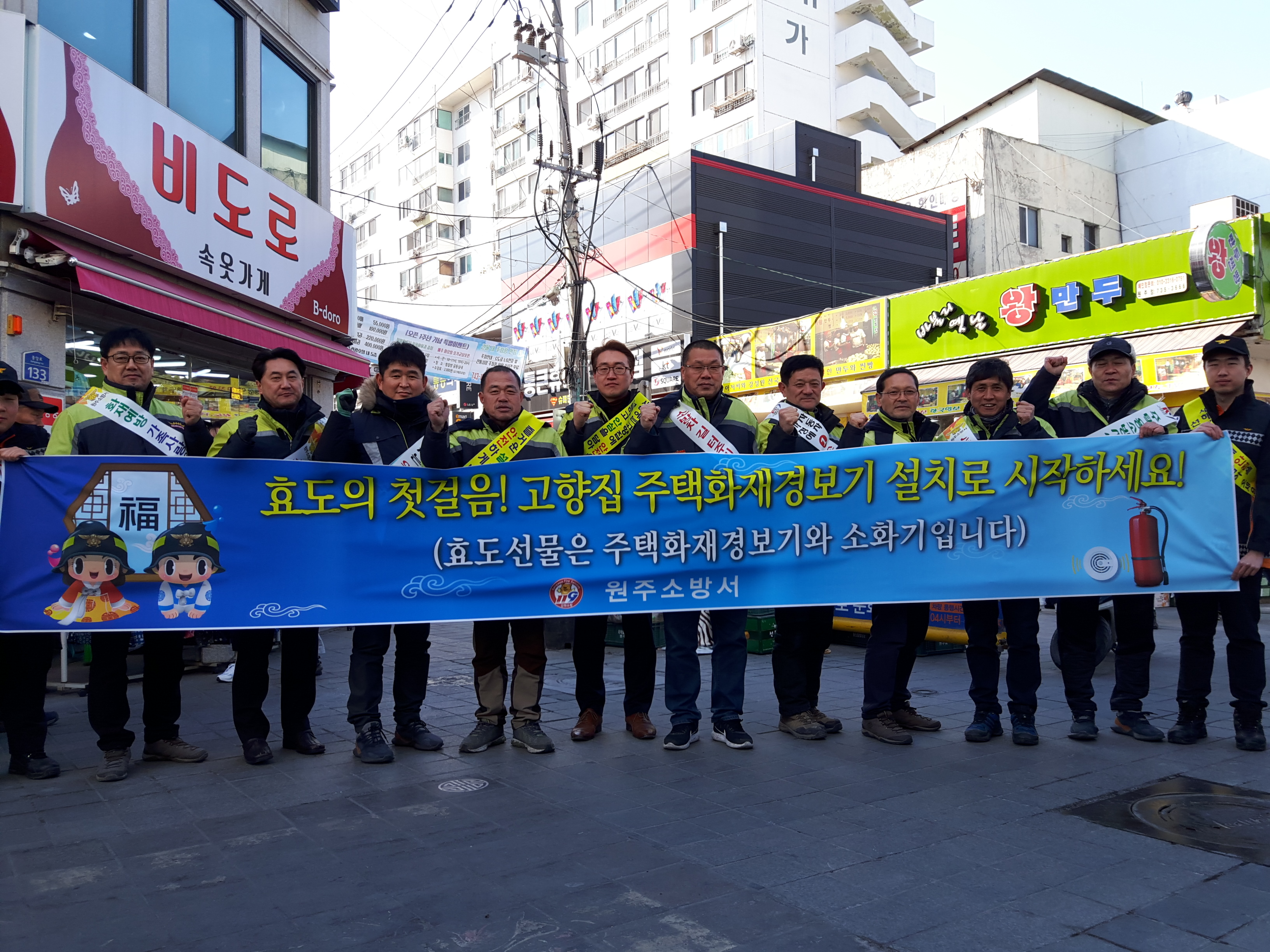 원주남성의용소방대 : 중앙시장 홍보 캠페인 행사