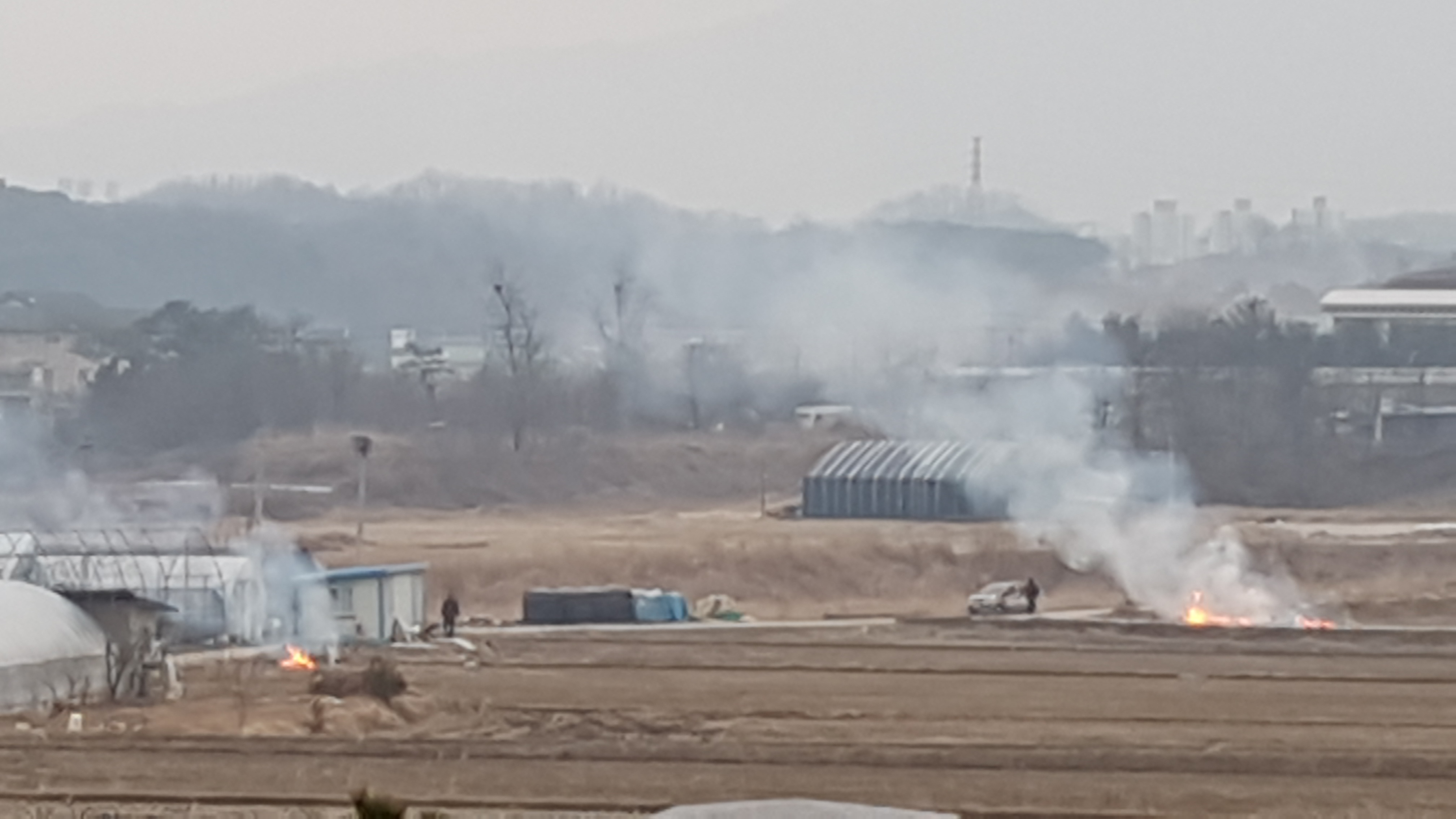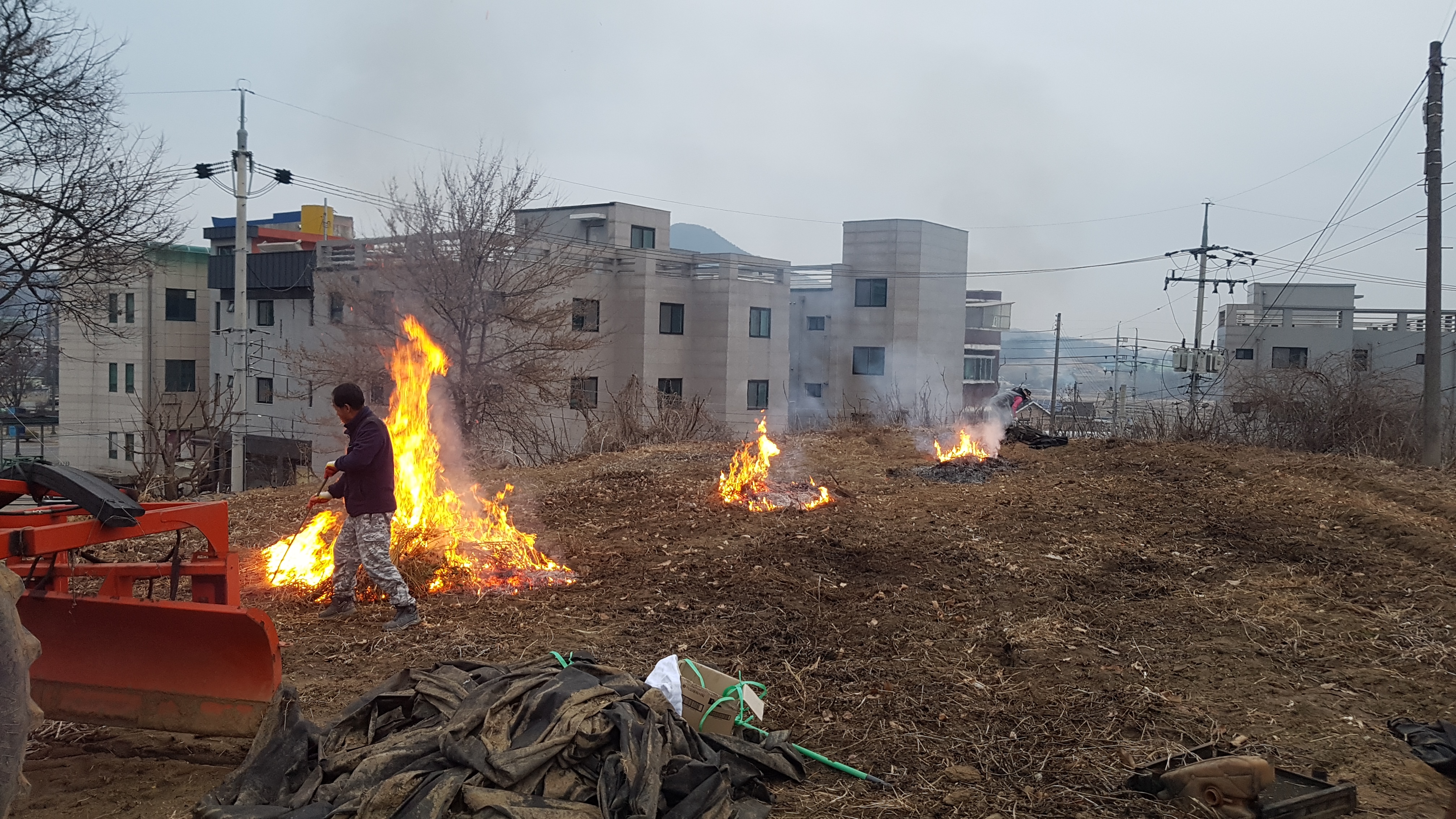 " 흥업면 사제1리 마을 밭,논두렁 공동 소각하는 날 "