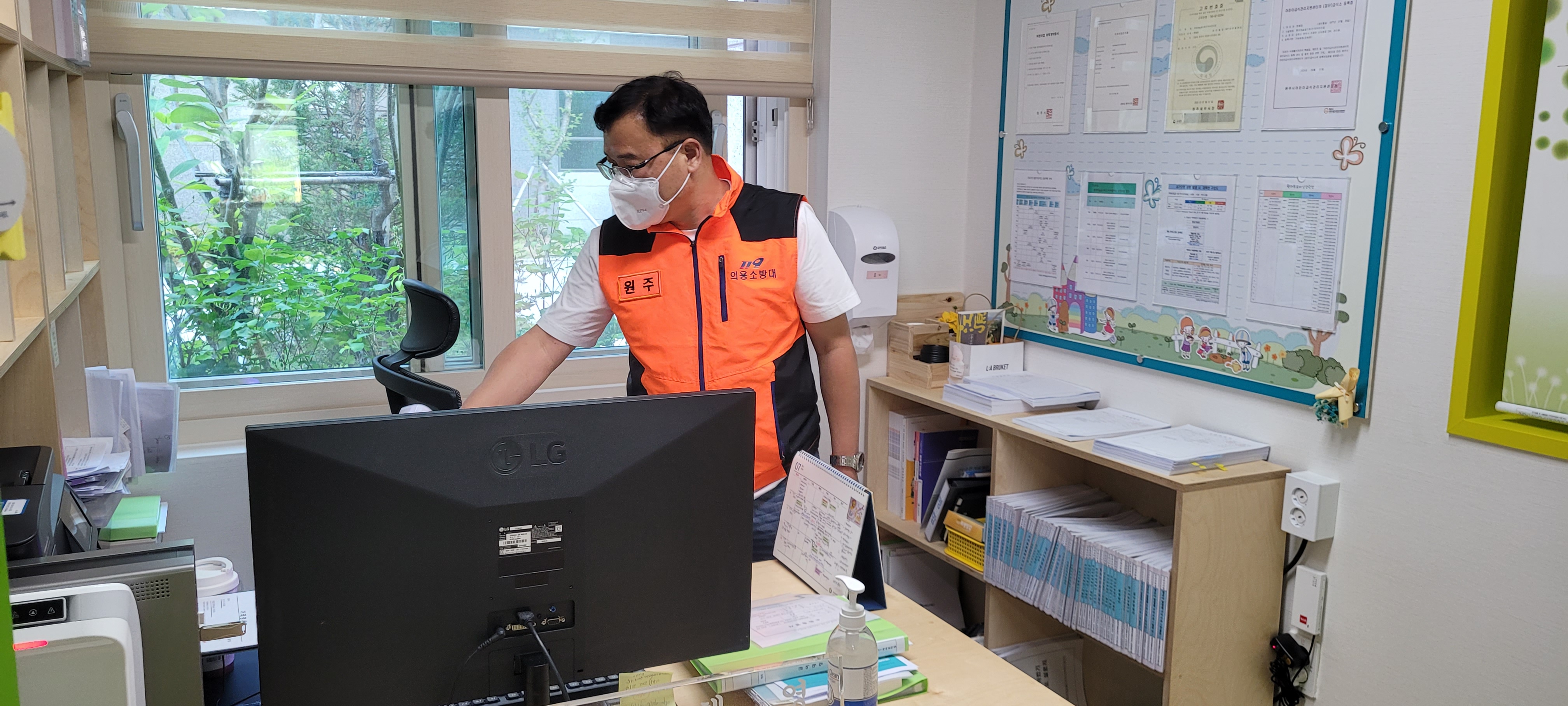 원주남성의용소방대 어린이집 방역활동