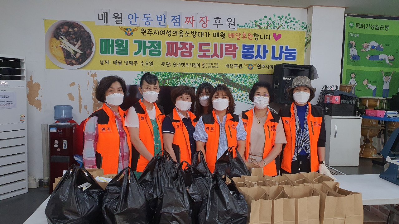원주여성의용소방대 "2021년 7월28일 노인문화싸롱 짜장도시락봉사나눔"