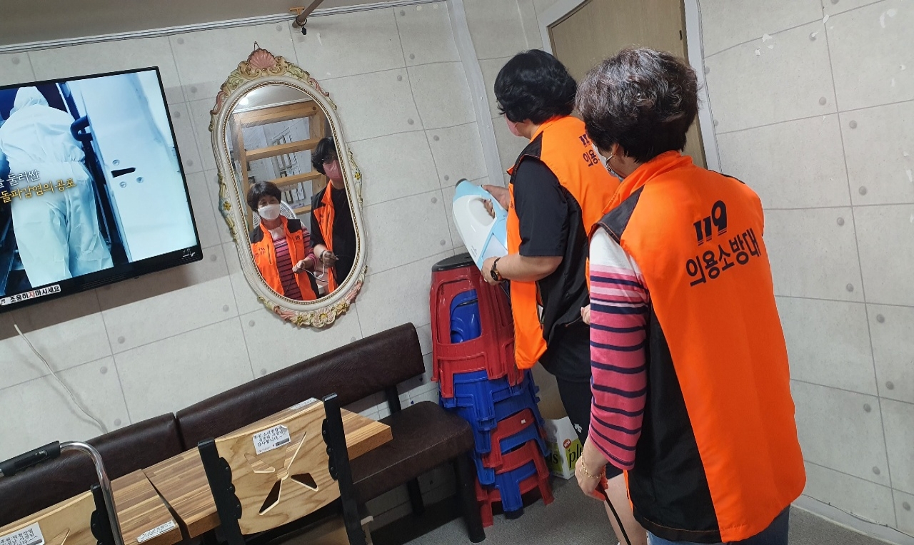 원주여성의용소방대 "2021년 8월27일 노인문화싸롱방역봉사"