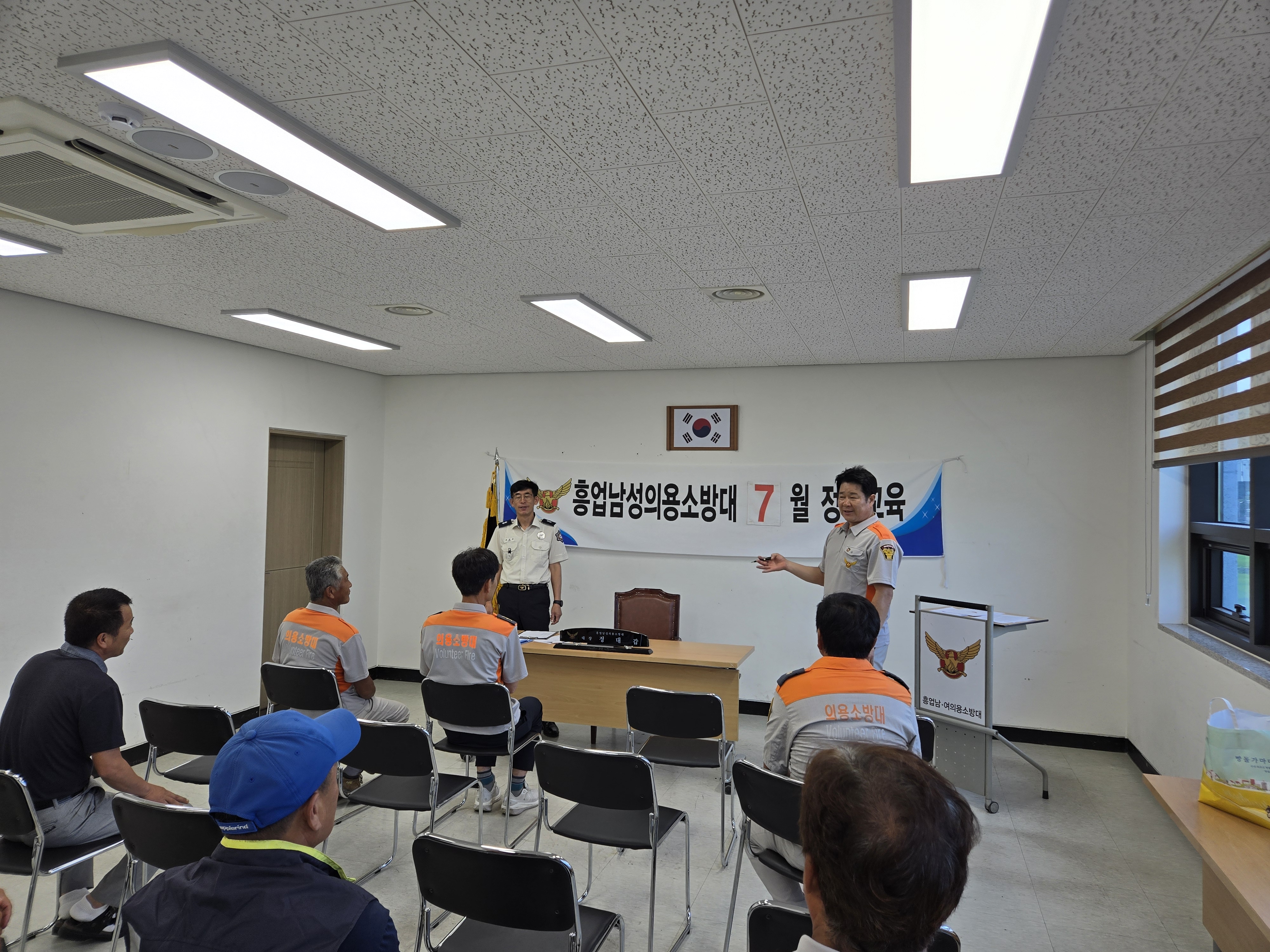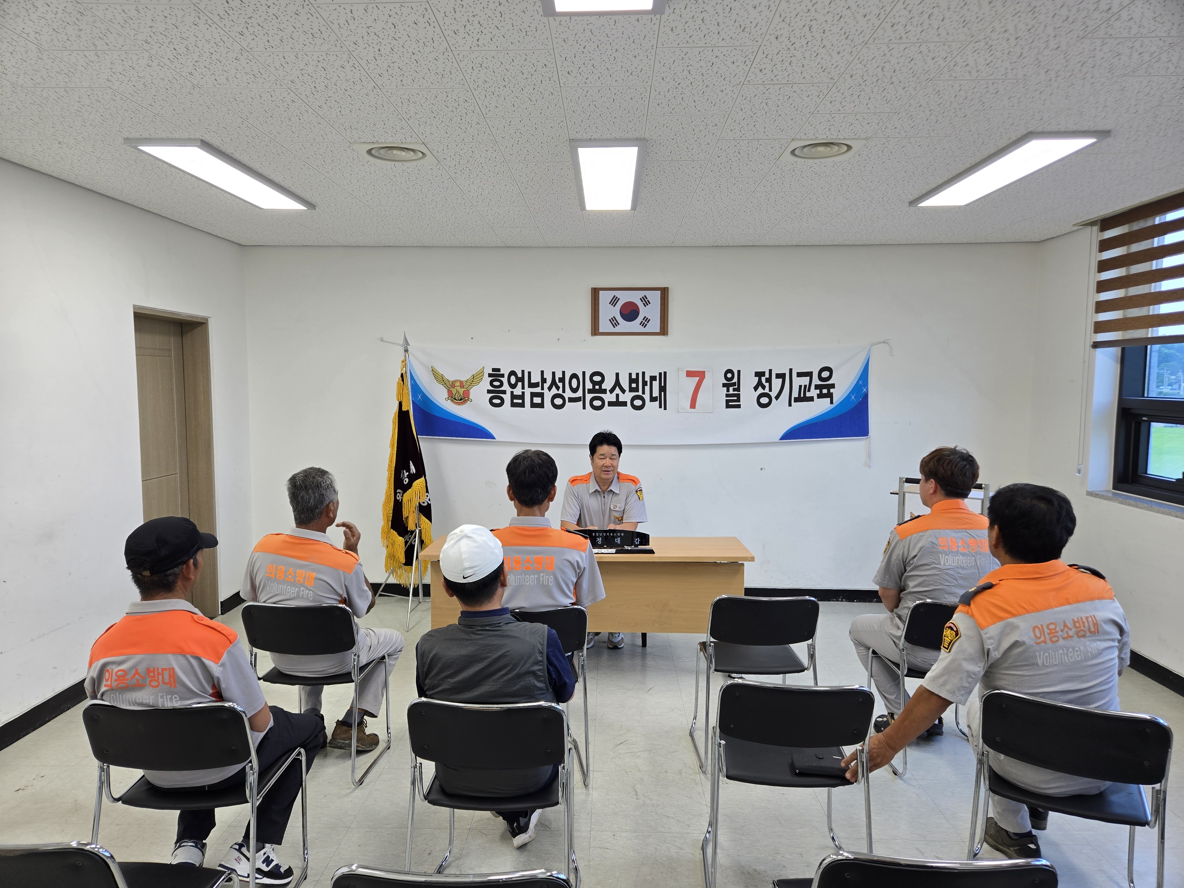- 신임 흥업119소방센터 센터장님과 인사시간 및 7월 정기교육 실시, 휴가철 음주관련 사건사고 예방교육