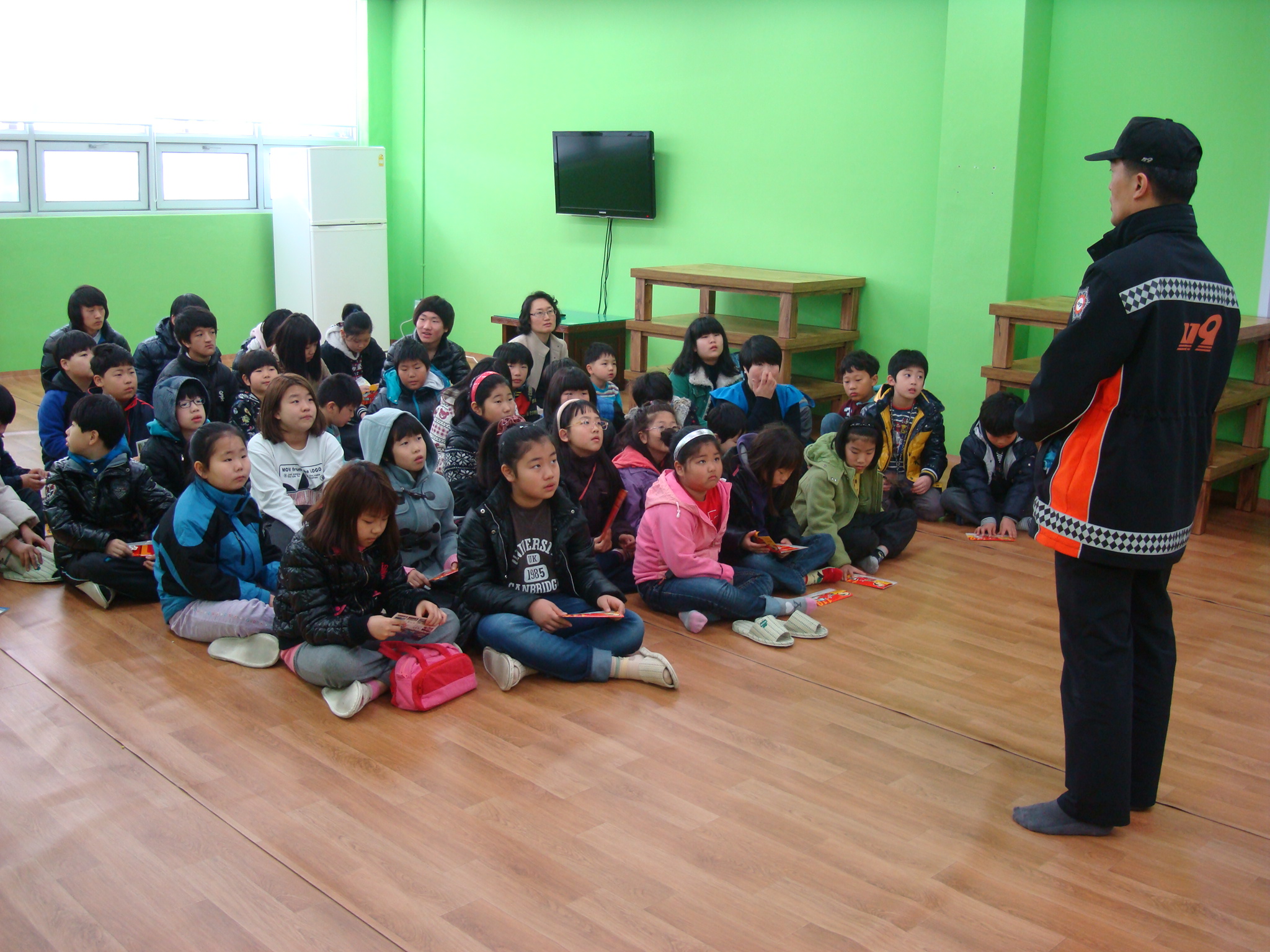 초중고생 60여명이 모인가운데 재난사고의종류, 재난시 대피요령