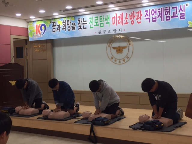 중학교 자유학기제 전면시행(‘16년)에 따라 청소년들의 안전의식 향상 및 진로 설계 지원을 위하여 원주소방서에서는 "미래소방관 진로탐색, 직업체험교실"을 운영하고 있으니, 많은 관심과 참여 바랍니다.