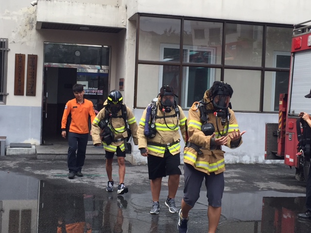 - 방화복 및 공기호흡기 착용 체험