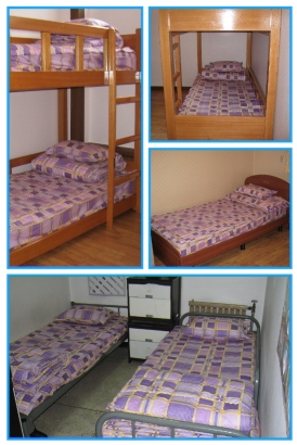산듯한 보라빛 체크무늬 침구는 대기실 가득 포근함과 아늑함을 주고 있습니다.