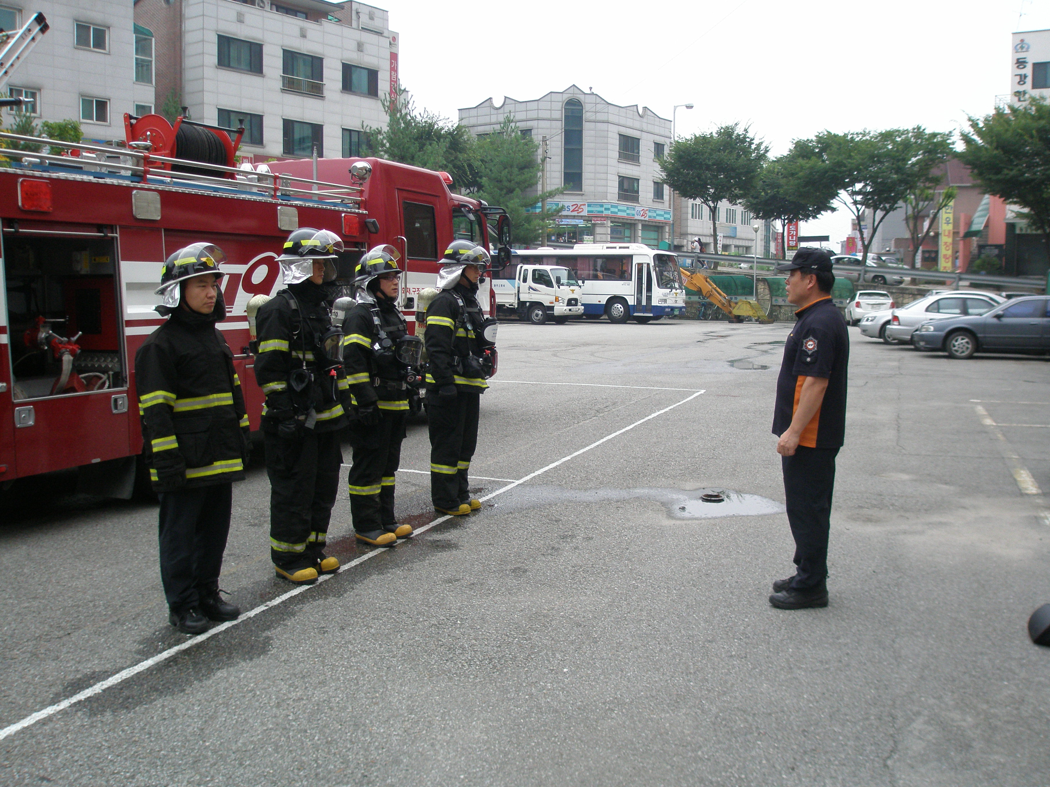 원주소방서(서장 박창진) 명륜119안전센터에서는 금일 센터 후정에서 화재진압훈련(4인방법)을 실시하였습니다. "훈련은 실전같이, 실전은 훈련같이" 라는 말이 있듯이 언제 어디서나 화재가 발생하여도 즉시 진압할 수 있는 능력을 기르기 위하여 무더운 여름이지만 모두들 열과 성을 다하여 값진 땀방울을 흘렸던 시간이었습니다