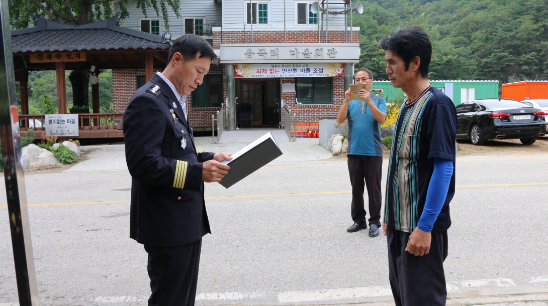 2016.09.02 원주시 호저면 용곡리 마을회관에서 화재없는 안전마을 지정행사가 열렸습니다.